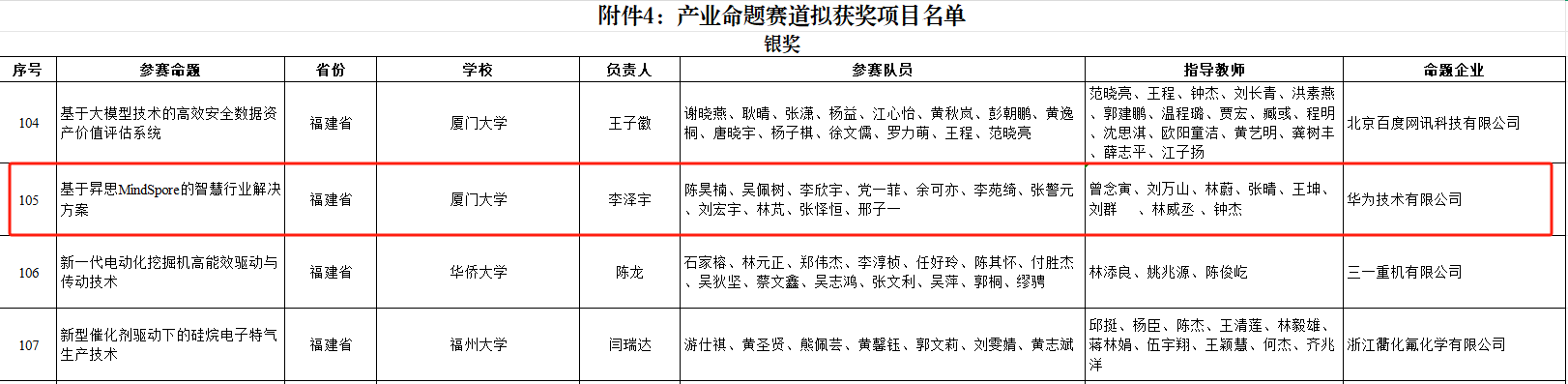 经过激烈角逐,我院“基于昇思Mindspore的智慧行业解决方案”项目获银奖;“伦琴威视--工业透射AI成像领航者”项目获铜奖;《中继云诊-车辆远程诊断全球领航者》、《知寻科技——无人化电力运维的国产智能尖端解决方案》两个项目入围总决赛。此外,《基于昇思MindSpore的智慧行业解决方案》作为全国28个优秀项目代表之一,在同期举办的中国大学生创新成果展中展出。参赛期间,项目得到学校教务处、现代教育技术与实践训练中心等部门的大力指导和支持。学院双创工作组林蔚、刘万山、李春梅等为项目参赛提供悉心指导与保障。