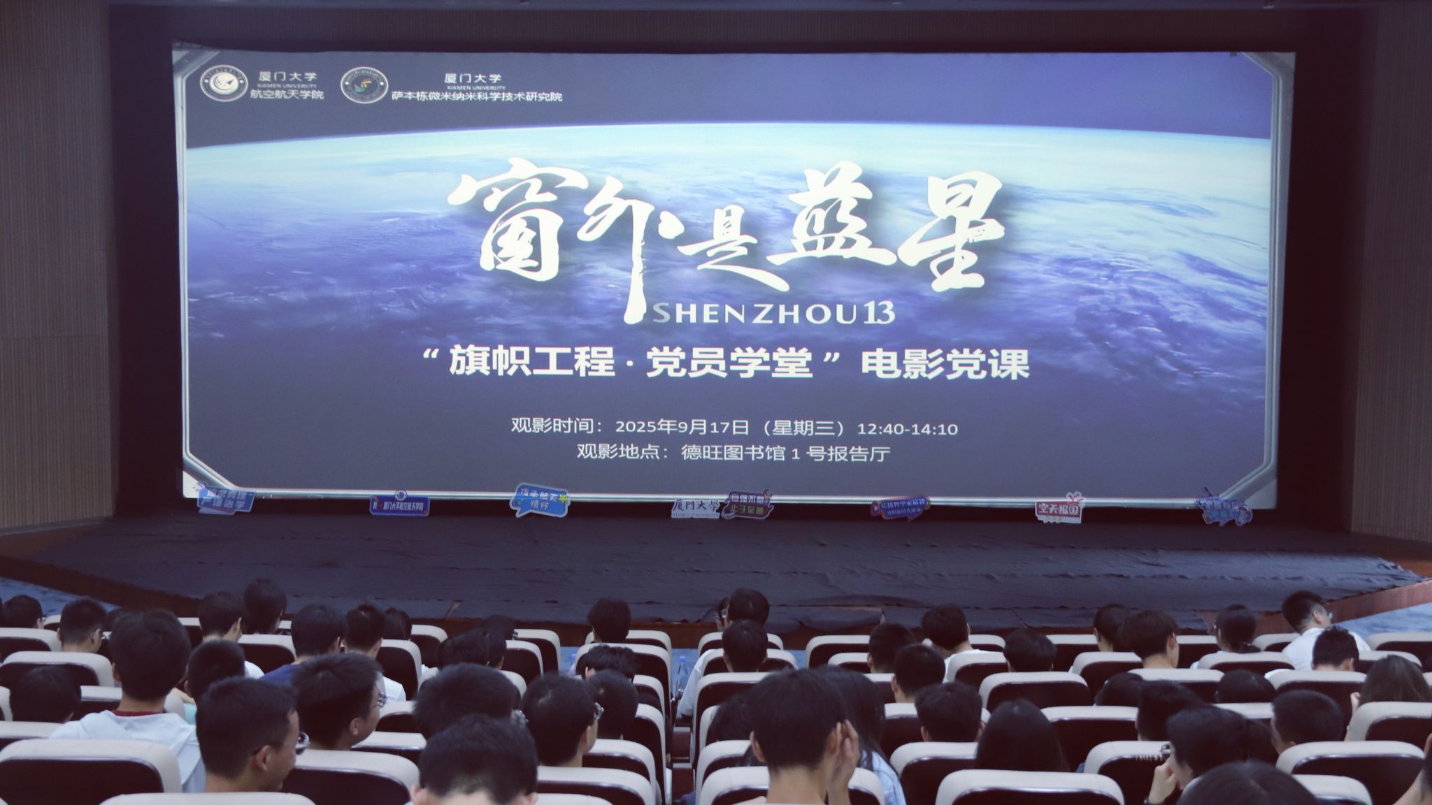 为深入学习贯彻习近平新时代中国特色社会主义思想,贯彻落实党的二十届三中全会精神和全国教育大会精神,持续提升学生党员、入党积极分子的思想政治素质和理论水平,坚定新生党员的“空天报国”“科技报国”信念,9月17日,航空航天学院团委组织了一场“旗帜工程·党员学堂”——“电影党课”,学生党员代表、教师党员代表在德旺图书馆一楼报告厅共同观看纪录电影《窗外是蓝星》。学院党委副书记林蔚、王寒等出席党课活动。