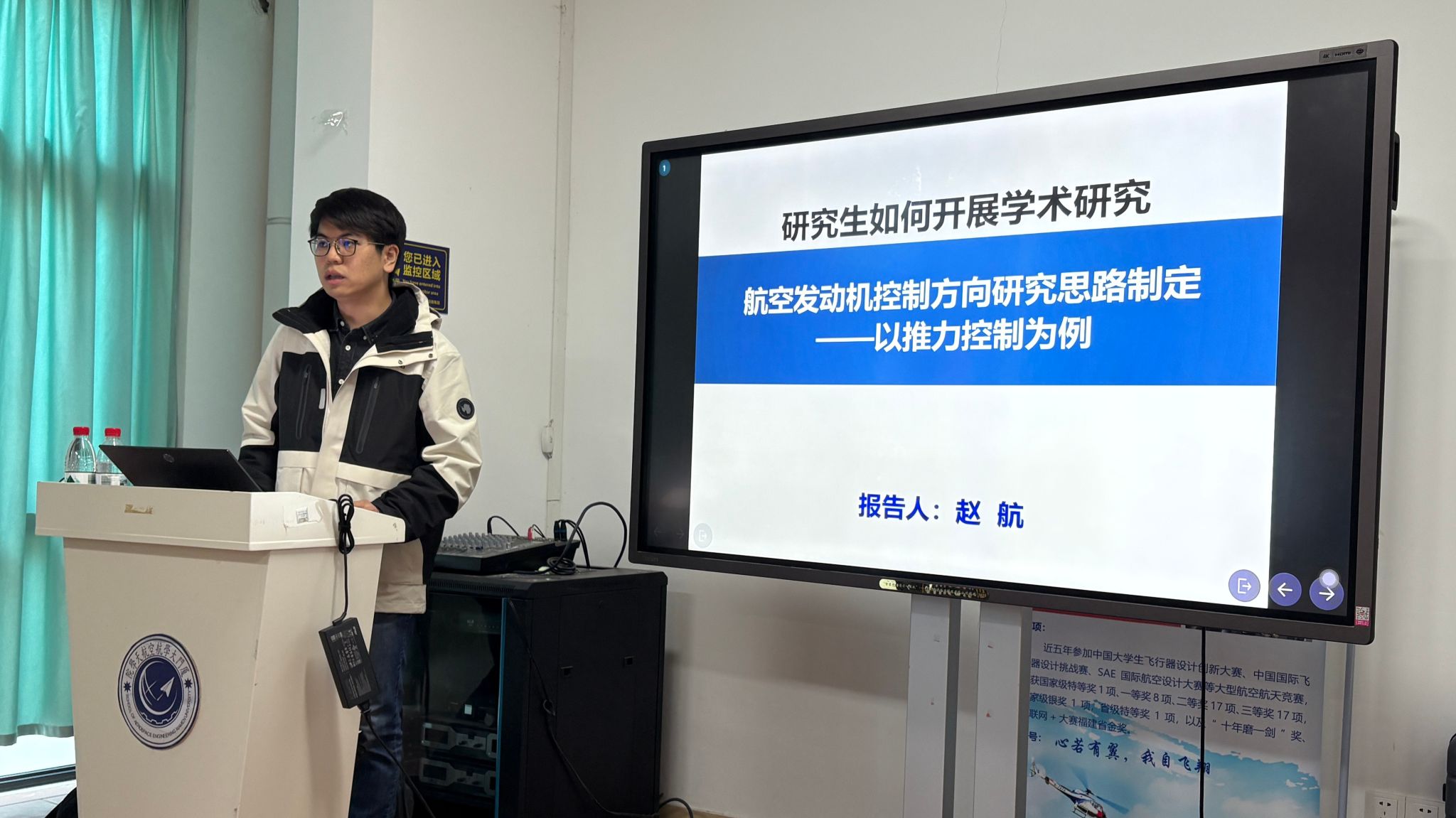 为帮助航院学子明晰学术研究实践路径、破解科研入门困惑,12月15日中午,航空航天学院“学业导师进社区”主题活动在映雪五“一站式”学生社区顺利开展。本次活动邀请学院助理教授赵航带来《研究生如何开展学术研究:航空发动机控制方向研究思路制定——以推力控制为例》专题讲座,学院党委副书记林蔚、团委副书记倪建超、辅导员凌梅婷等与同学们共同参加。