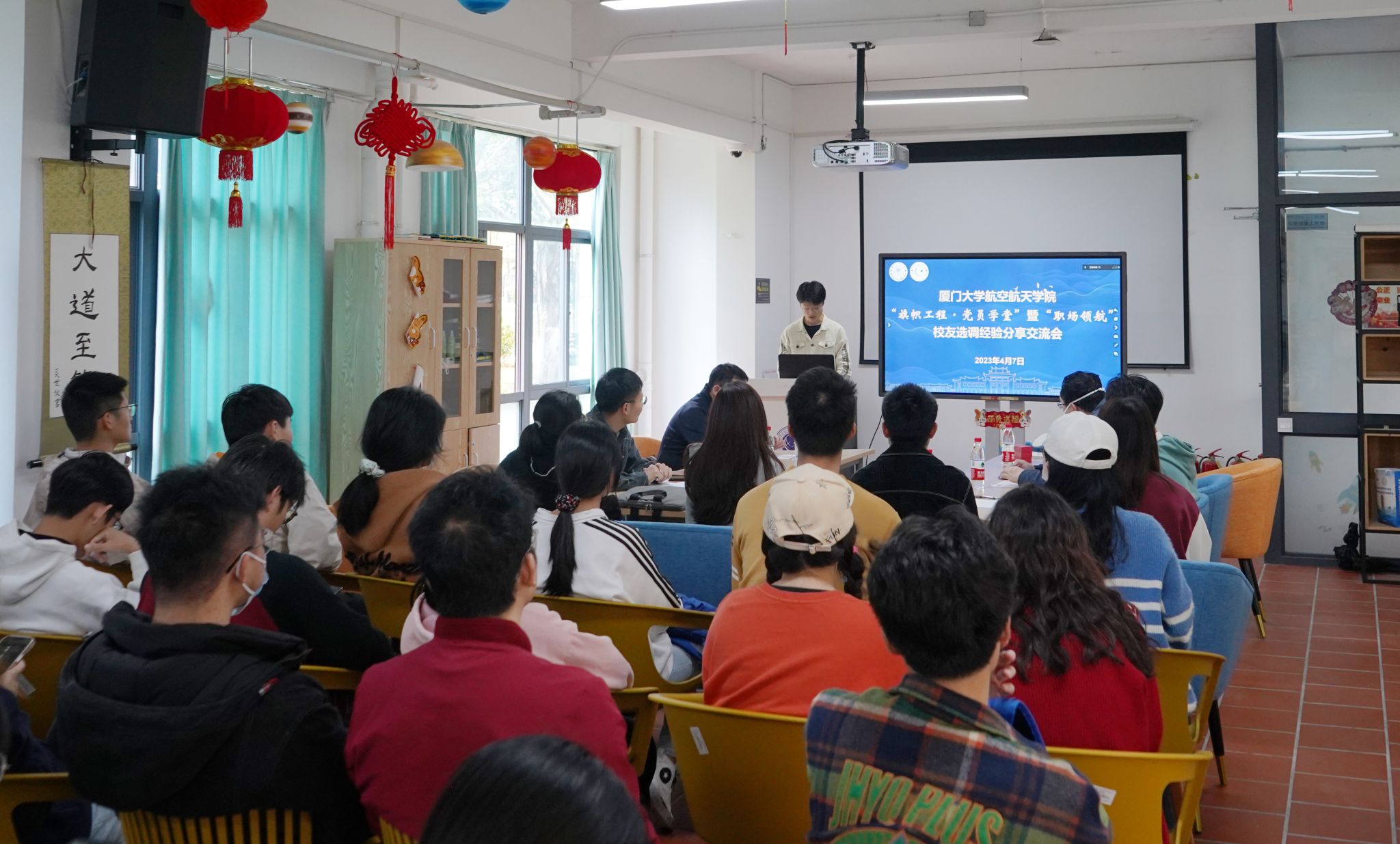 4月7日中午,航空航天学院“旗帜工程·党员学堂”暨职场领航之校友选调经验分享交流会在翔安校区映雪五“一站式”学生社区举行。分享会邀请了3位赴基层就业的校友分享选调经验及工作近况,学院航空强国研究生党支部承办并采取线上线下相结合的方式进行。