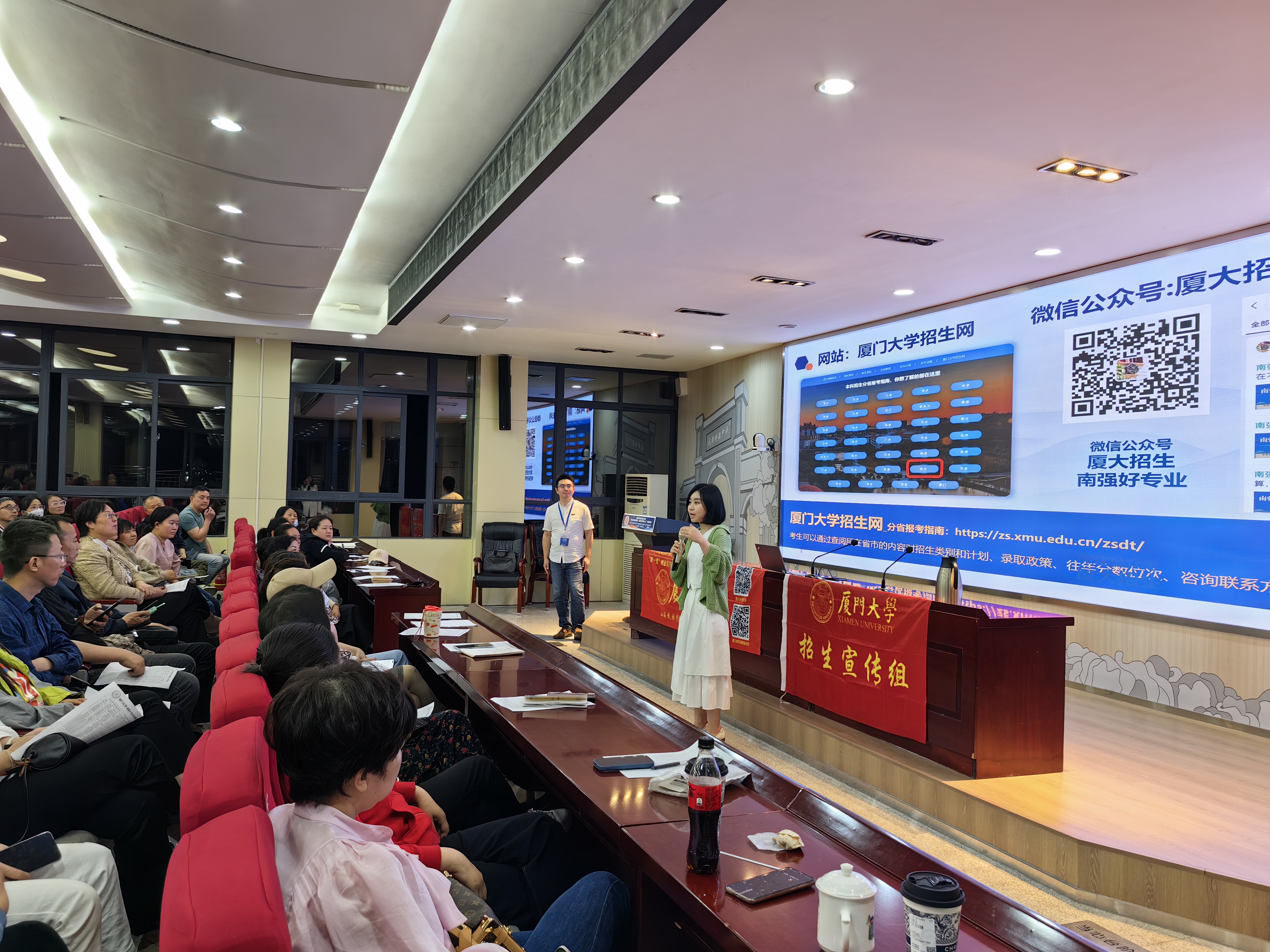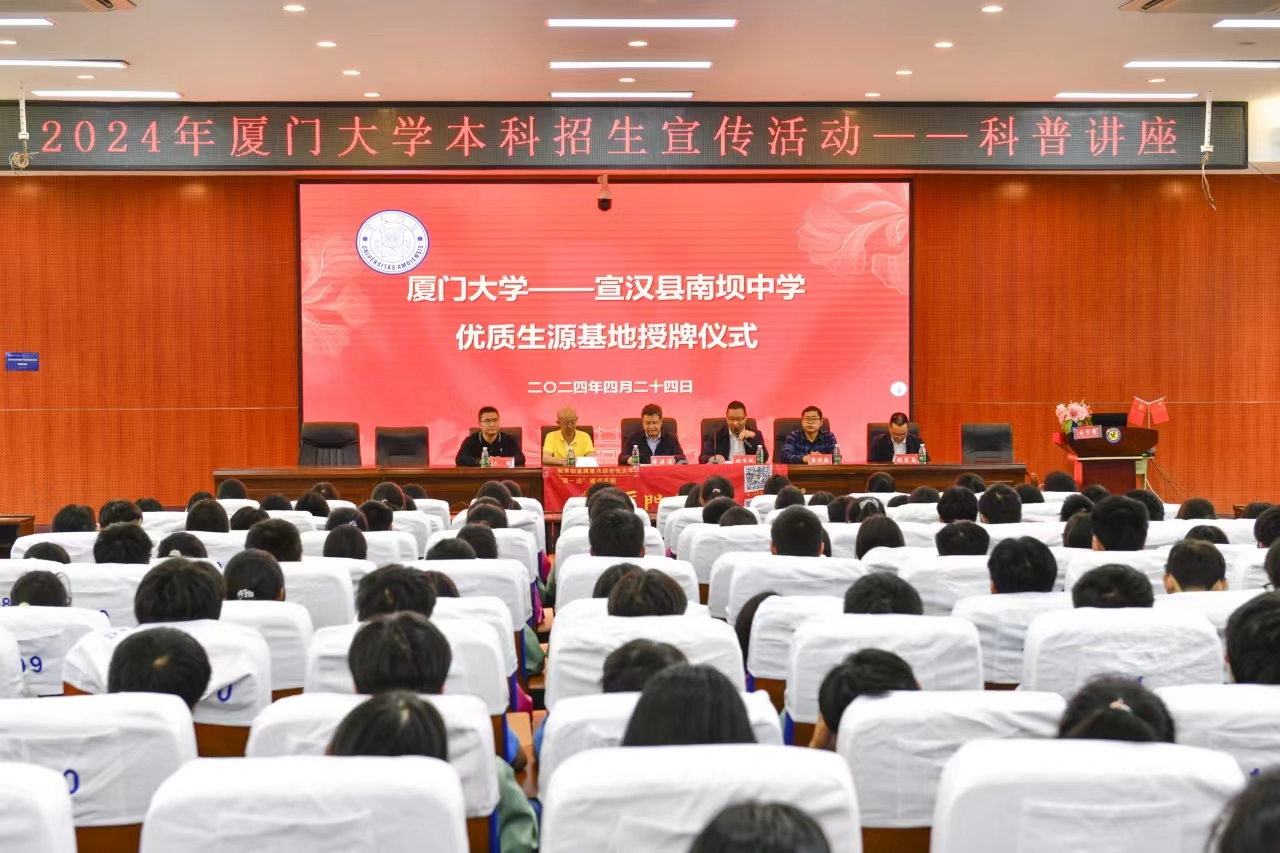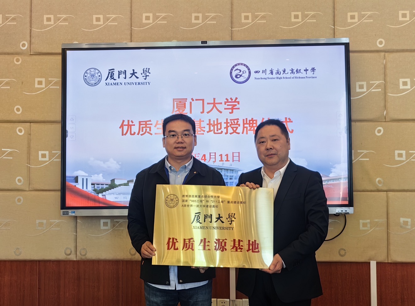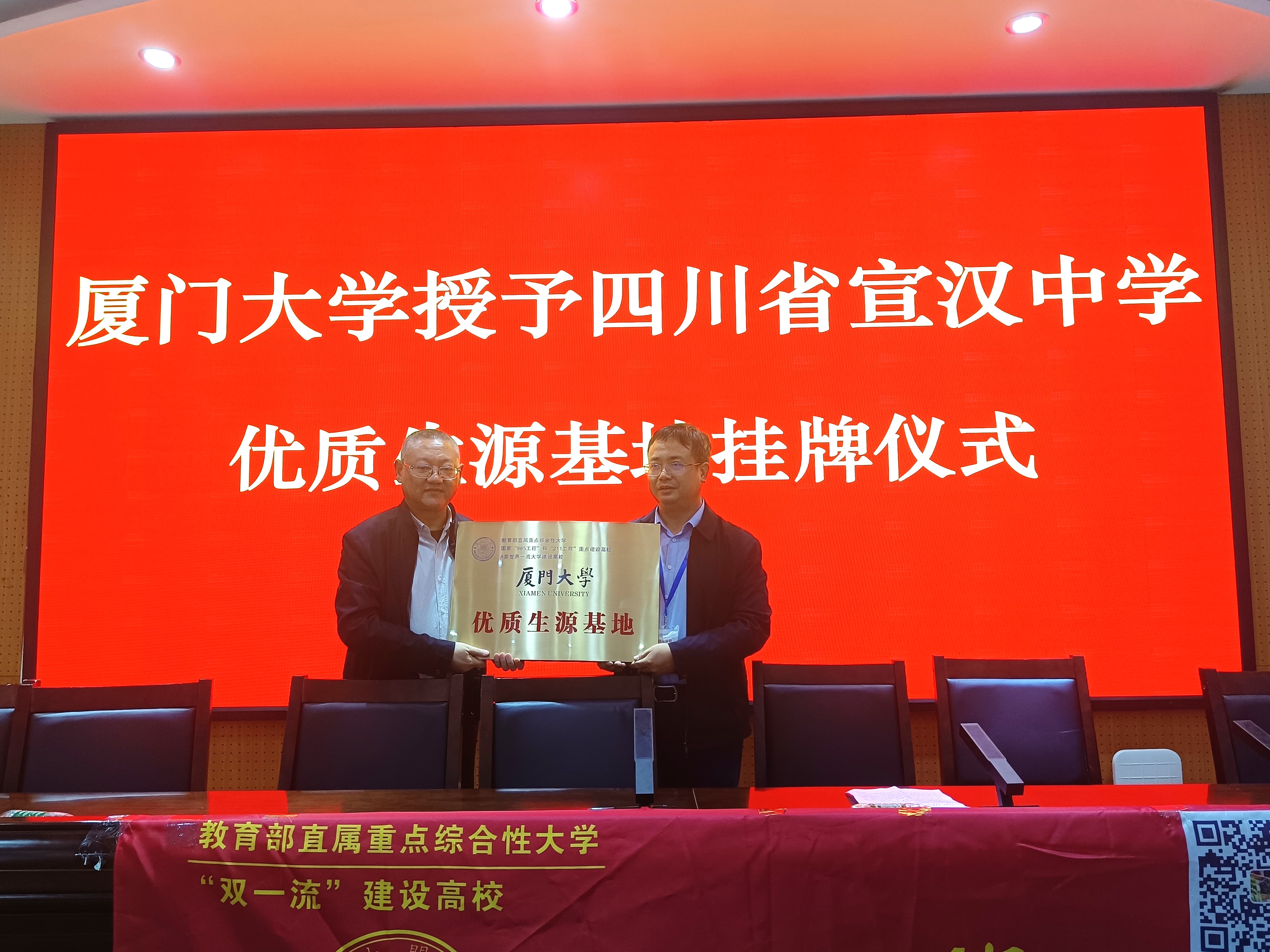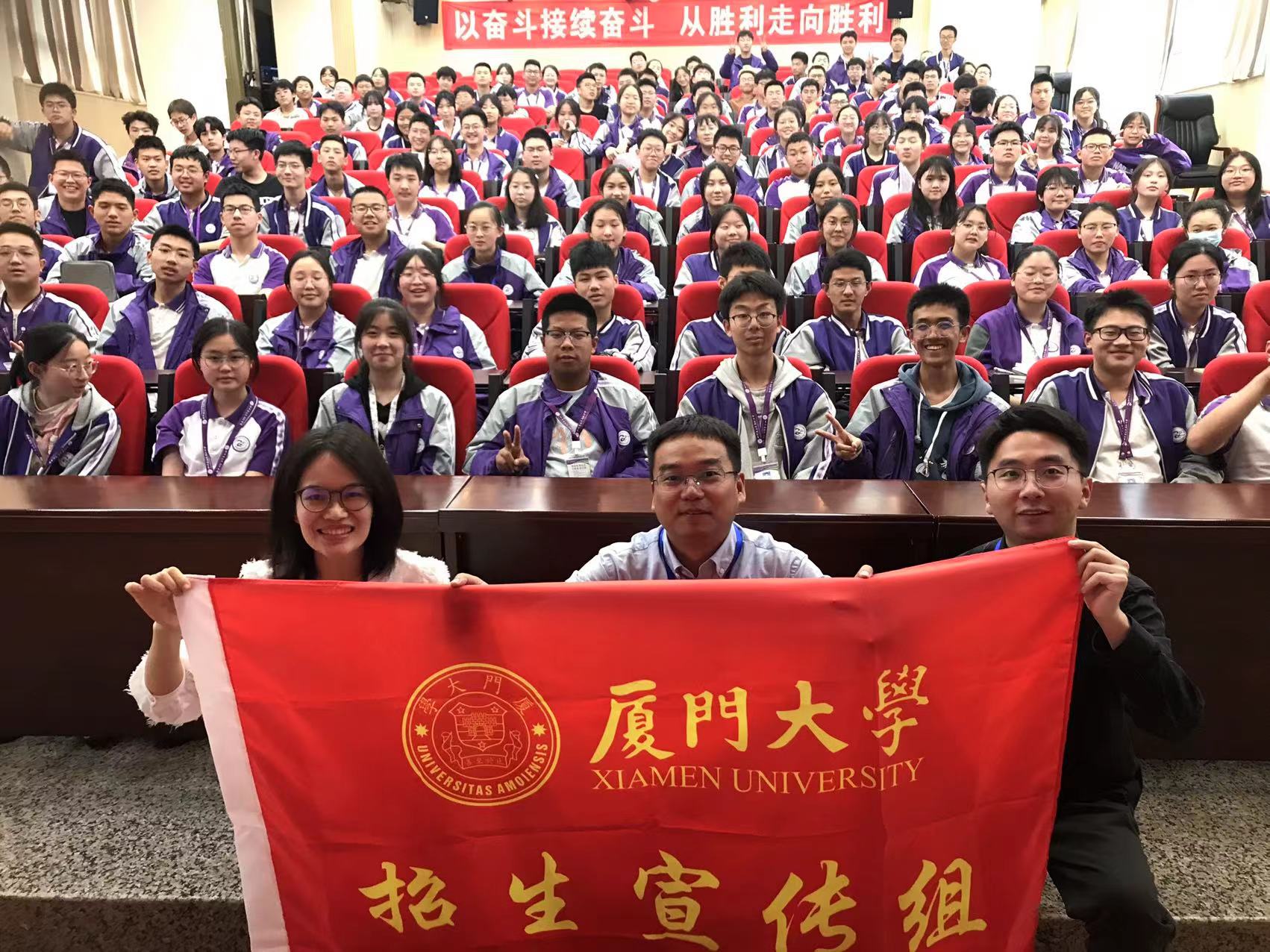 4月份,四川招生宣传组黄玥、洪永强、祝青园、金华、周锐、能源学院李君涛等前往成都七中、树德中学、石室中学、绵阳中学、绵阳东辰学校等14所中学开展了科普/招生宣传讲座活动,完成5所中学授牌仪式。期间,宣传组成员孙怀清赴宜宾、攀枝花、眉山、南充、泸县、资阳等地60所中学巡展,让厦门大学的脚印奔赴四川各地。5月份,建筑与土木工程学院院长张建霖,航空航天学院党委书记廖志丹、副书记王寒等赴莆田一中、莆田六中、擢英中学开展授牌仪式、科普讲座以及校友回母校活动,建立我校与中学的深入联系。