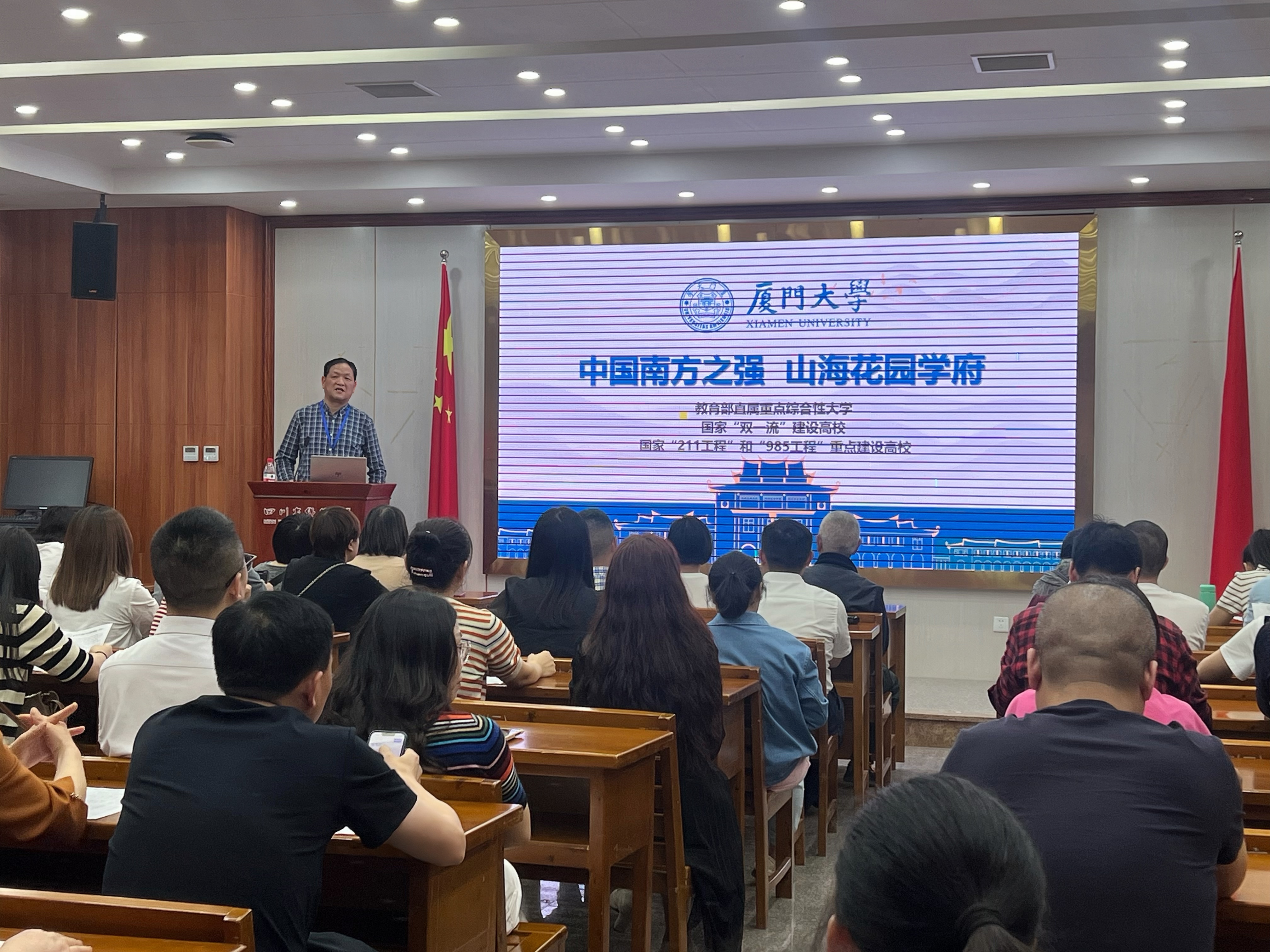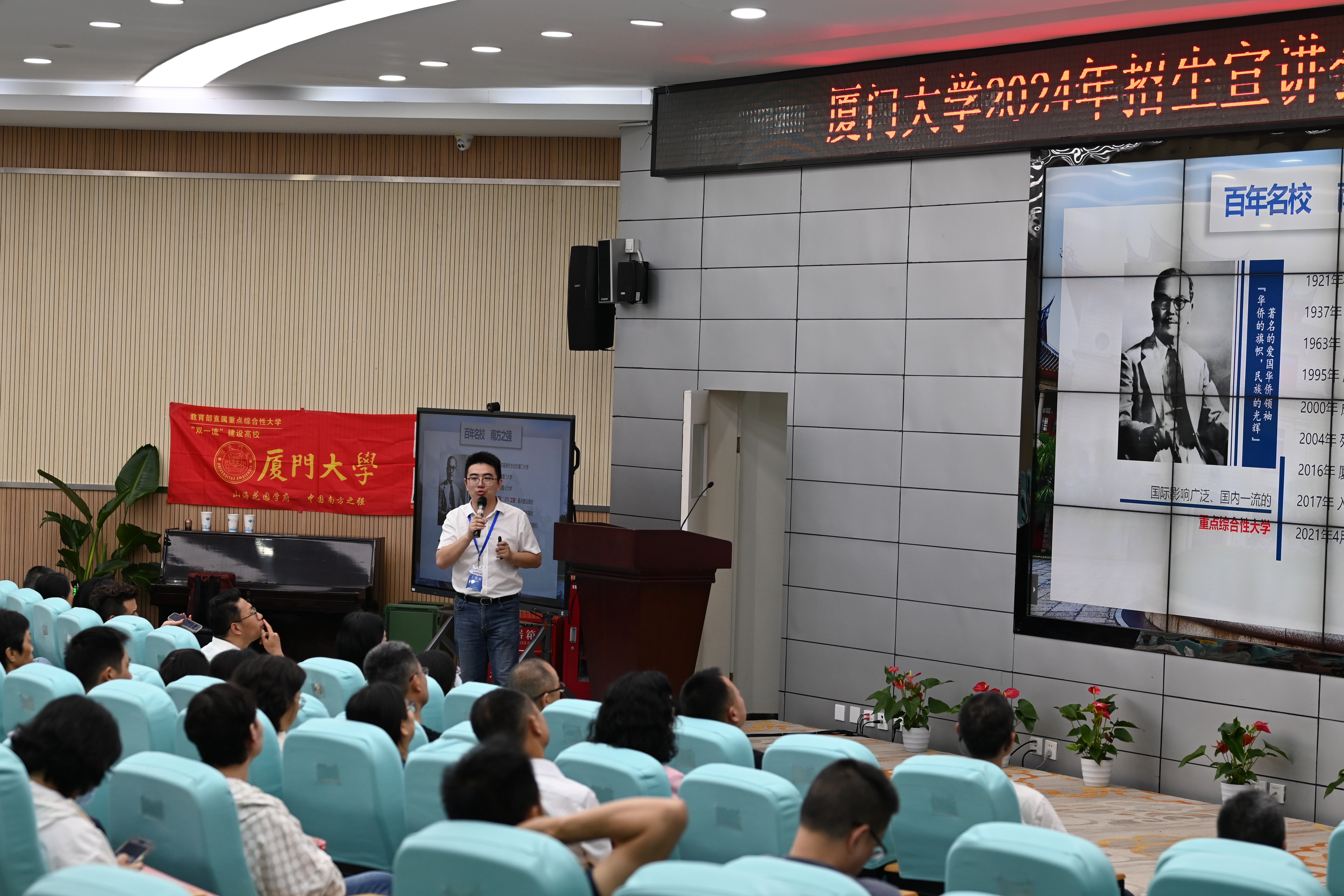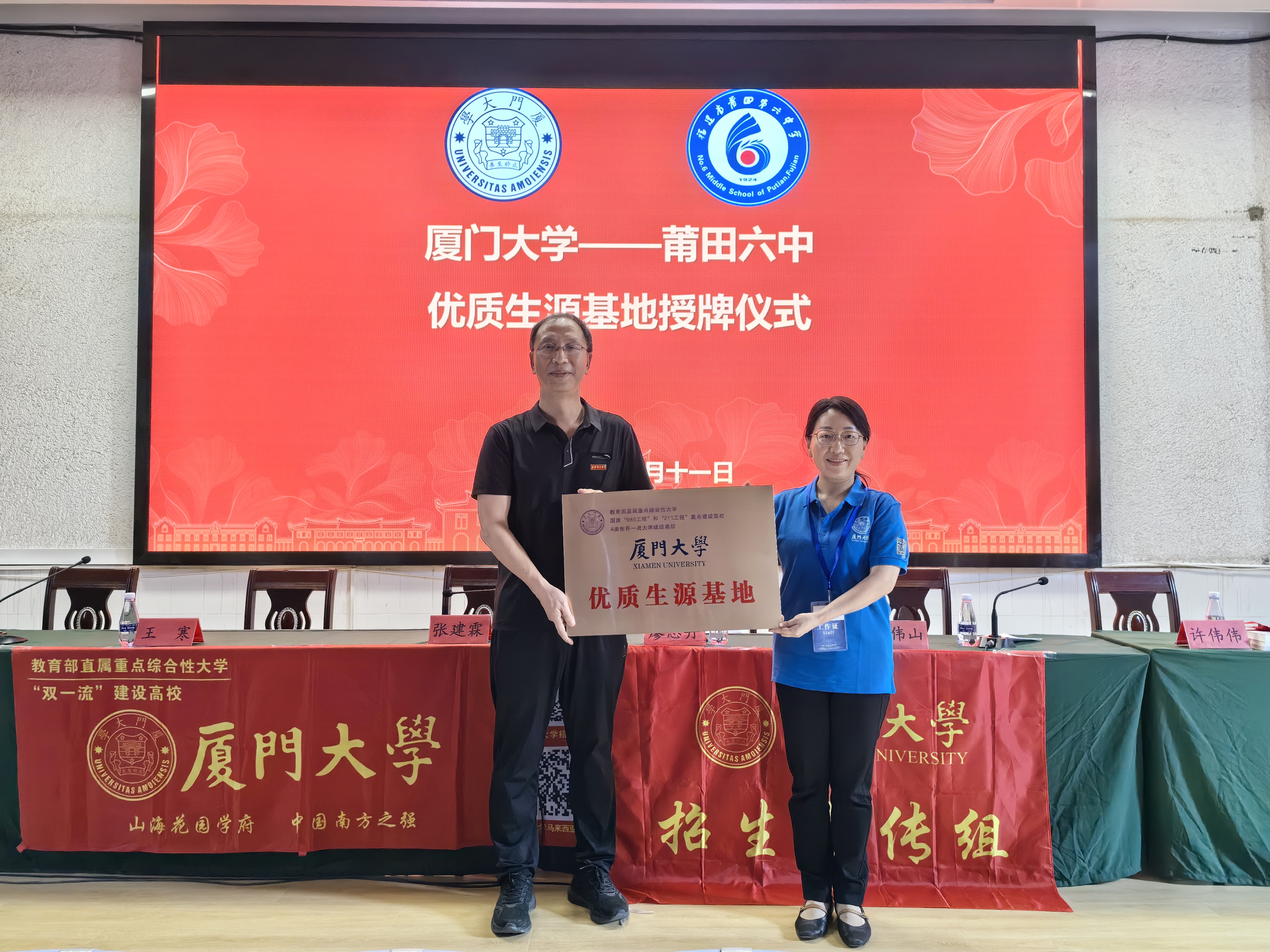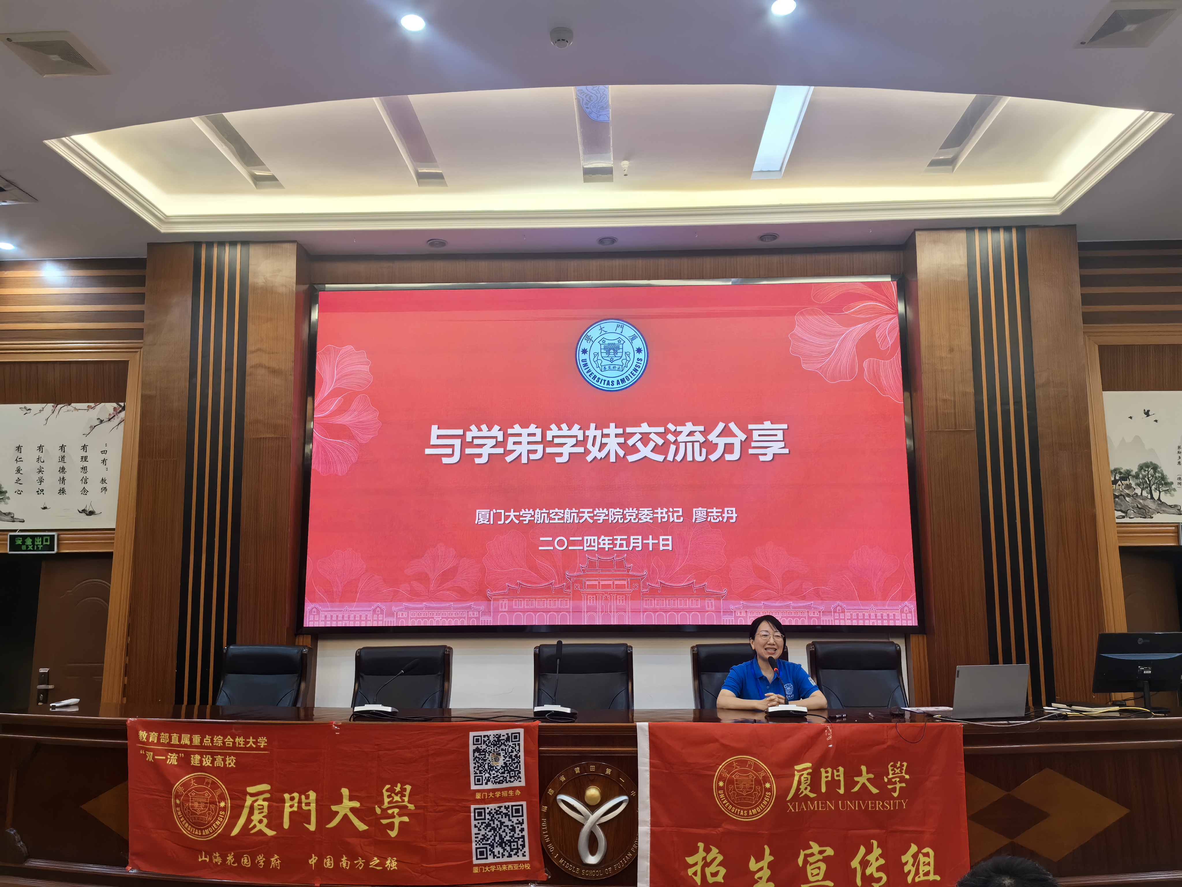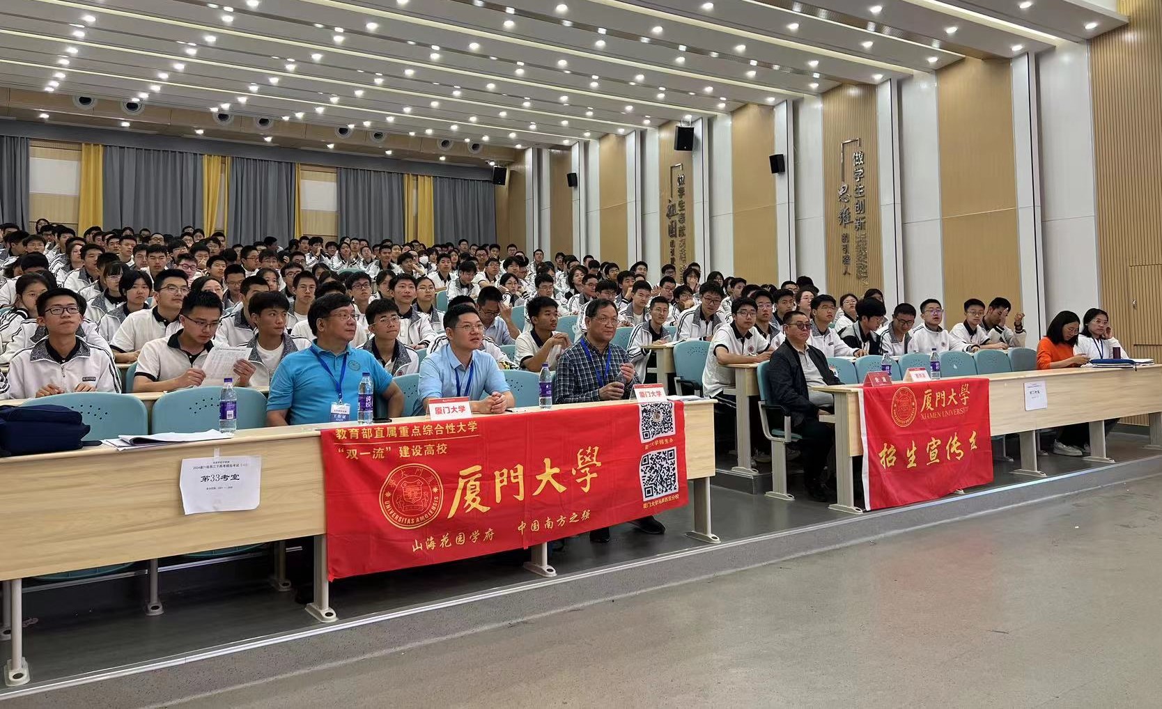 4月份,四川招生宣传组黄玥、洪永强、祝青园、金华、周锐、能源学院李君涛等前往成都七中、树德中学、石室中学、绵阳中学、绵阳东辰学校等14所中学开展了科普/招生宣传讲座活动,完成5所中学授牌仪式。期间,宣传组成员孙怀清赴宜宾、攀枝花、眉山、南充、泸县、资阳等地60所中学巡展,让厦门大学的脚印奔赴四川各地。5月份,建筑与土木工程学院院长张建霖,航空航天学院党委书记廖志丹、副书记王寒等赴莆田一中、莆田六中、擢英中学开展授牌仪式、科普讲座以及校友回母校活动,建立我校与中学的深入联系。