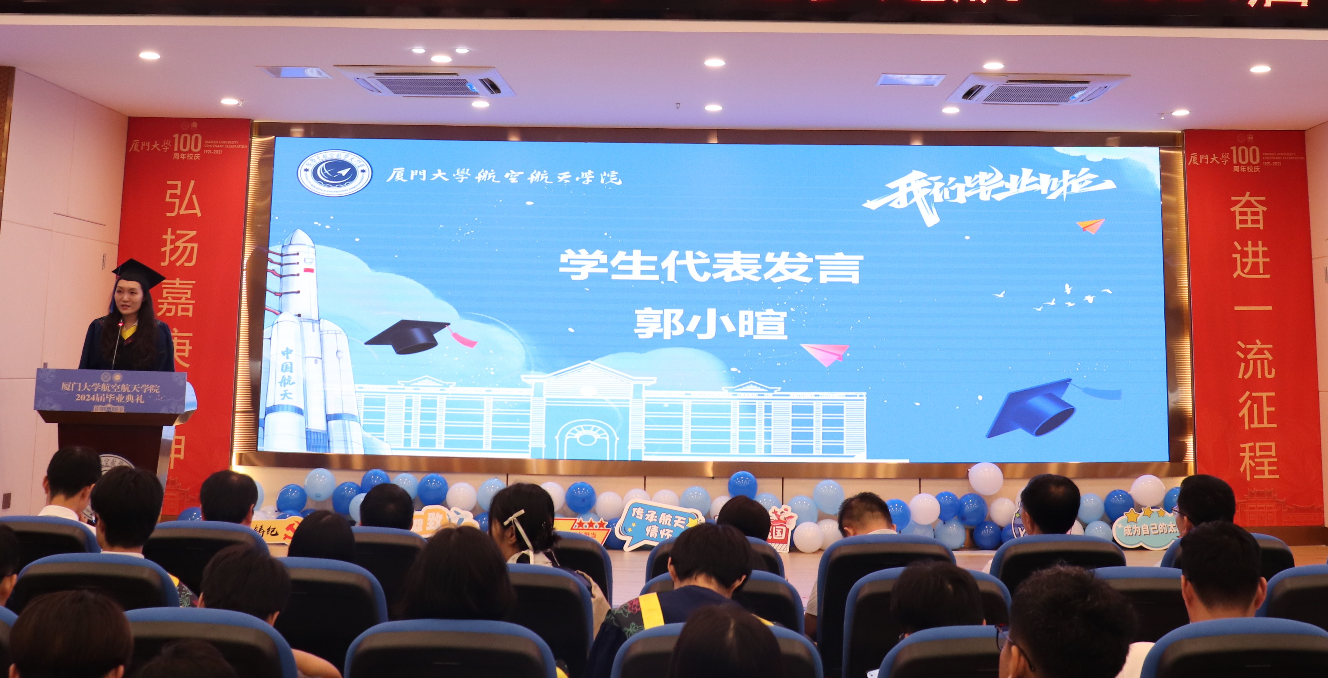 “自强!自强!学海何洋洋······”,厦门大学航空航天学院“追梦寰宇·逐梦远航”2024届毕业典礼在激昂的校歌合唱中圆满结束。