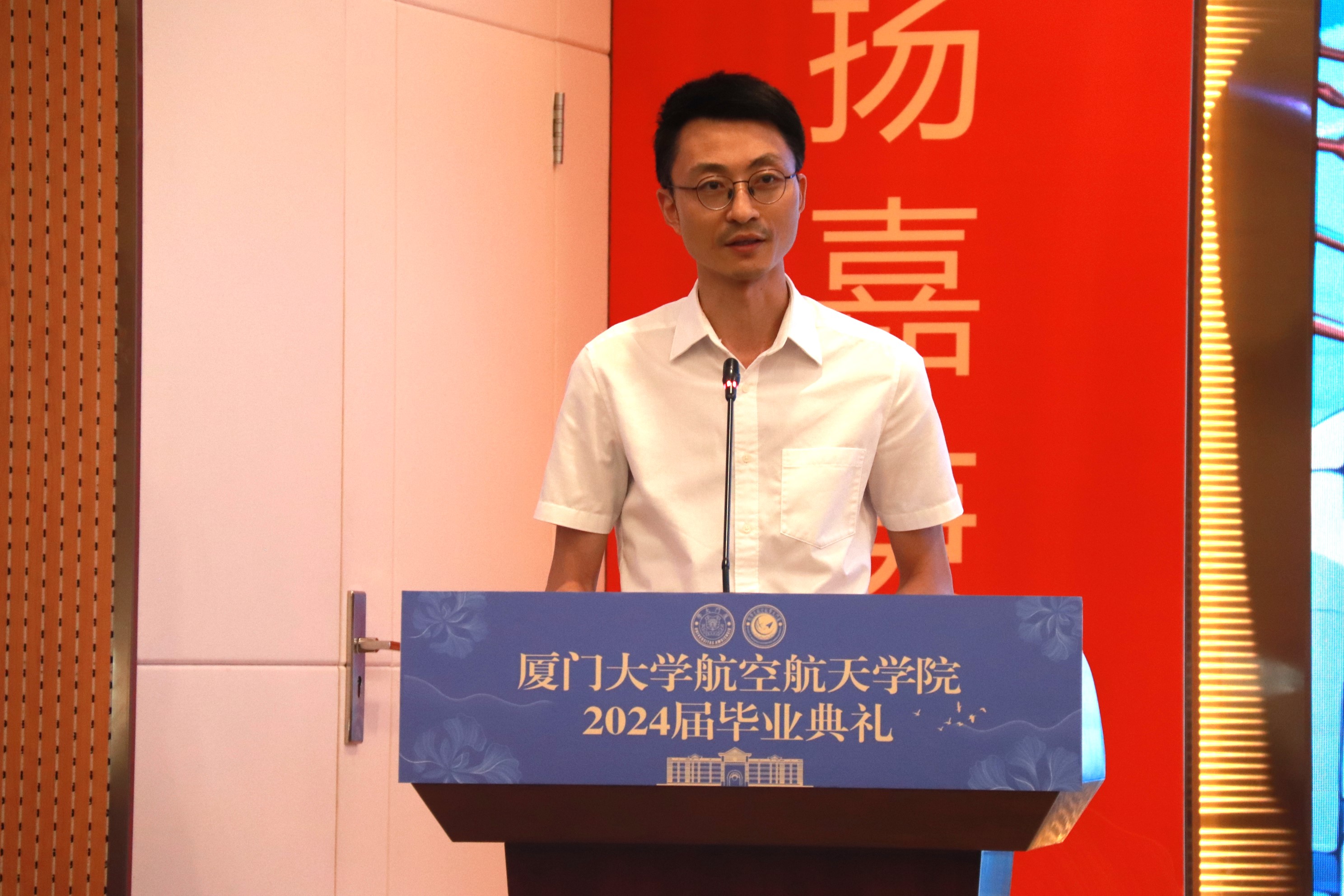 6月19日下午,厦门大学航空航天学院“追梦寰宇·逐梦远航”2024届毕业典礼在学院547报告厅隆重举行。学院党政领导干部、教师代表、工程技术人员代表、党政管理和后勤服务人员代表、2024届全体毕业生和部分学生家长参加典礼。学院党委副书记林蔚主持典礼。