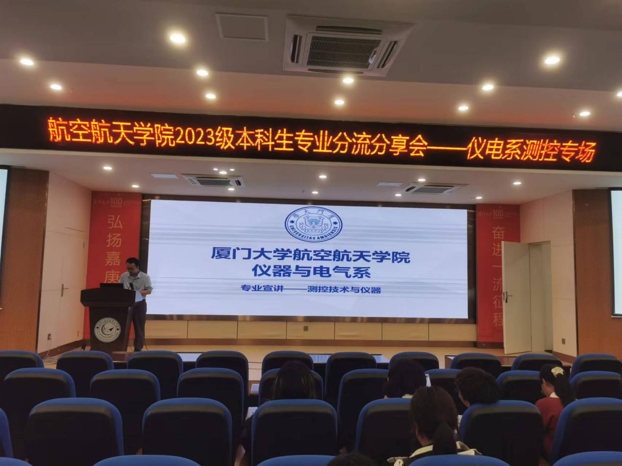 4月25日,2023级本科专业分流分享会——仪电系测控专场在院楼547报告厅举行。范贤光教授,王昕副教授,薛文东、杨媛媛助理教授等仪电系教师为2023级本科生做宣讲,会议由王昕主持。