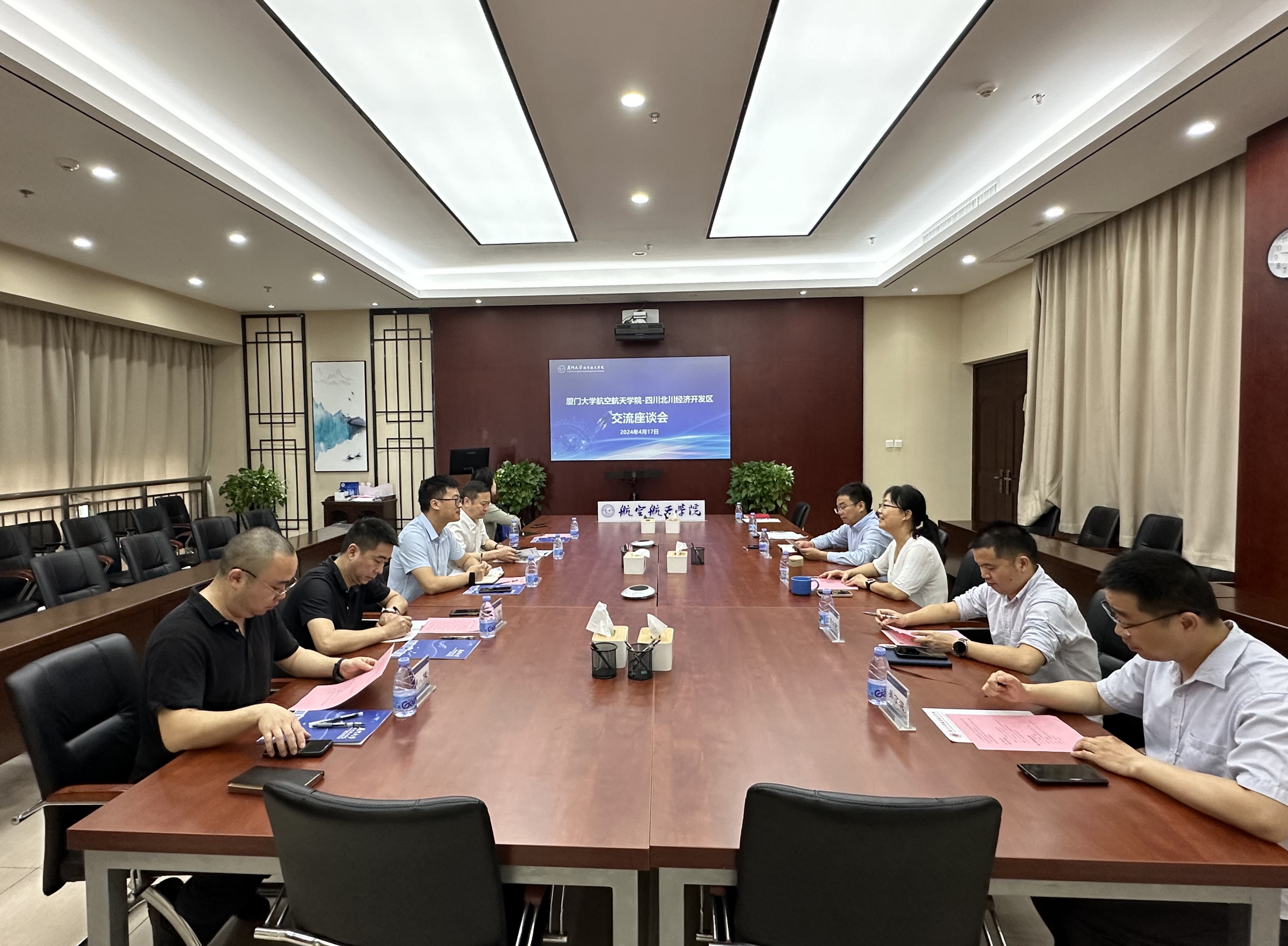 林蔚首先对考察团一行来访表示热烈欢迎,随后双方分别观看四川北川经济开发区及航空航天学院宣传视频,进一步增进了解。黄玥对北川近年来取得的成就表示祝贺,他表示此前恰逢四川天府新区厦大创新研究院(以下简称四川研究院)揭牌落地,厦门大学将加快产学研用深度融合,推进科技成果快速转化,进一步实现校地合作双赢,搭建双向交流平台,结合四川省经济社会发展需要,整合并导入厦门大学优质教学、科研与人才培养资源,充分发挥厦门大学人才学科、技术、成果、资源和渠道优势,四川北川与航空航天学院可借助四川研究院这一优势载体,在低空经济领域开展合作,促进低空经济产能转换,落地北川。