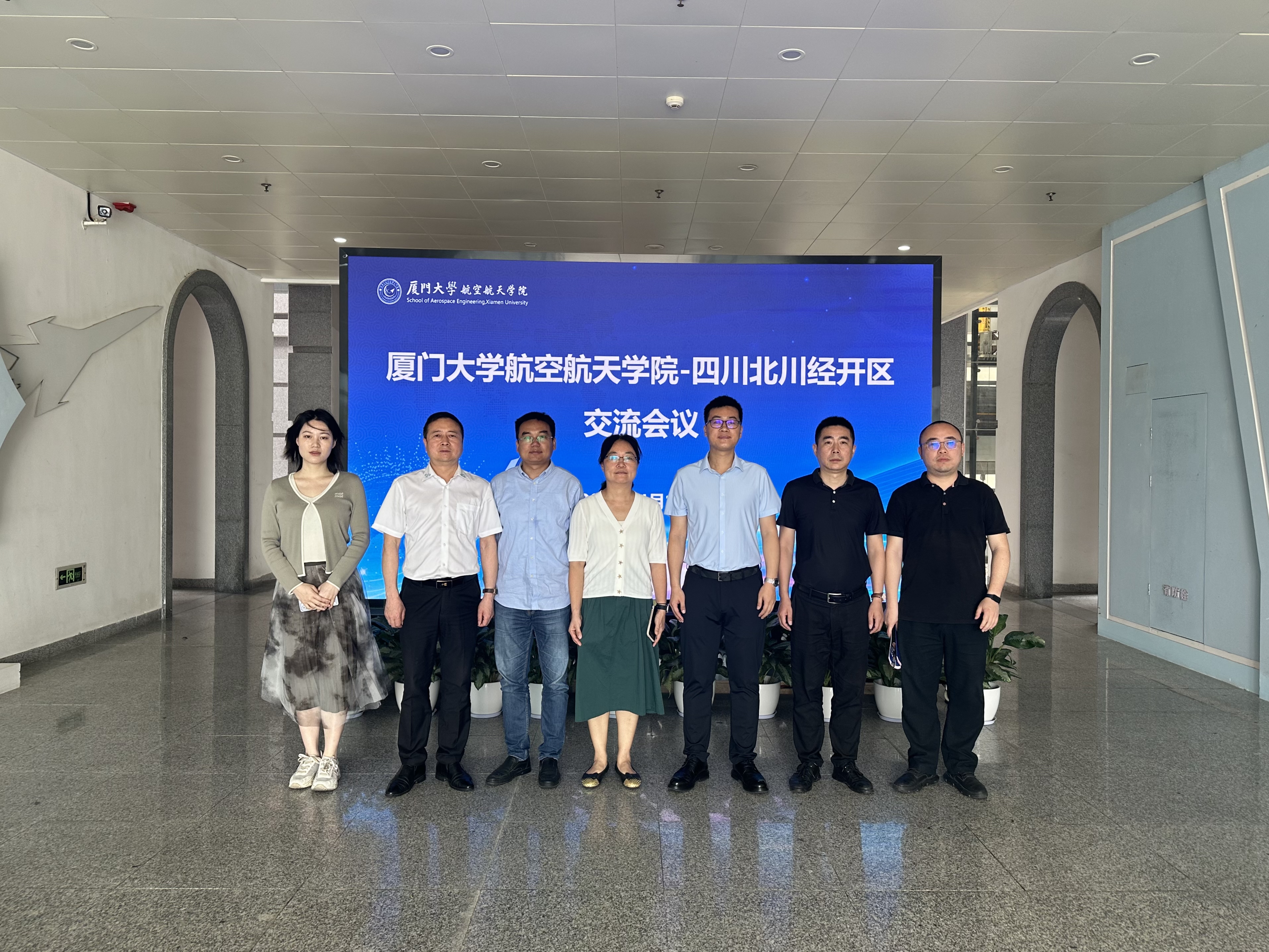 为进一步落实厦门大学航空航天学院与北川羌族自治县战略合作协议落实,深入推进双方各方面合作,4月17日上午,四川北川经济开发区管理委员会一行到访厦门大学航空航天学院并开展座谈。四川北川县委常委、曲山镇党委书记丁猛,四川北川经开区管委会主任母贤斌,绵阳科技城(北川)通航产业园指挥部副指挥长罗宁,四川北川经开区机场管理局副局长黄荣义,科航机场公司总经理胡健,航空航天学院党委副书记林蔚等参加座谈,活动由副院长黄玥主持。