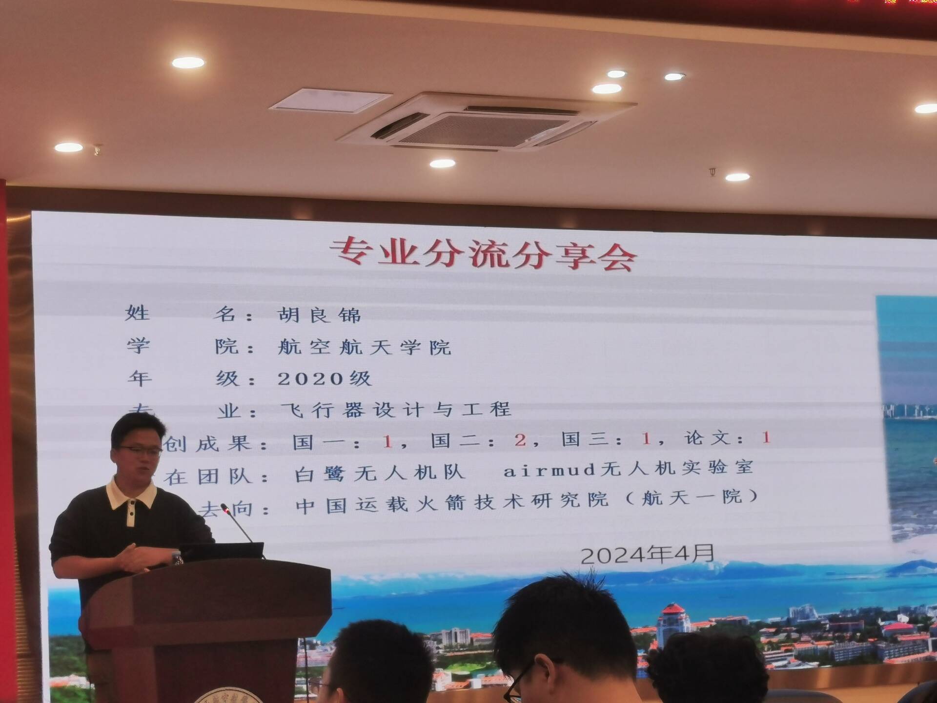 4月19日,2023级本科专业分流分享会——飞行器系专场在院楼547报告厅举行。飞行器系王晓光副教授和2023级本科生参加会议,会议由王晓光主持。