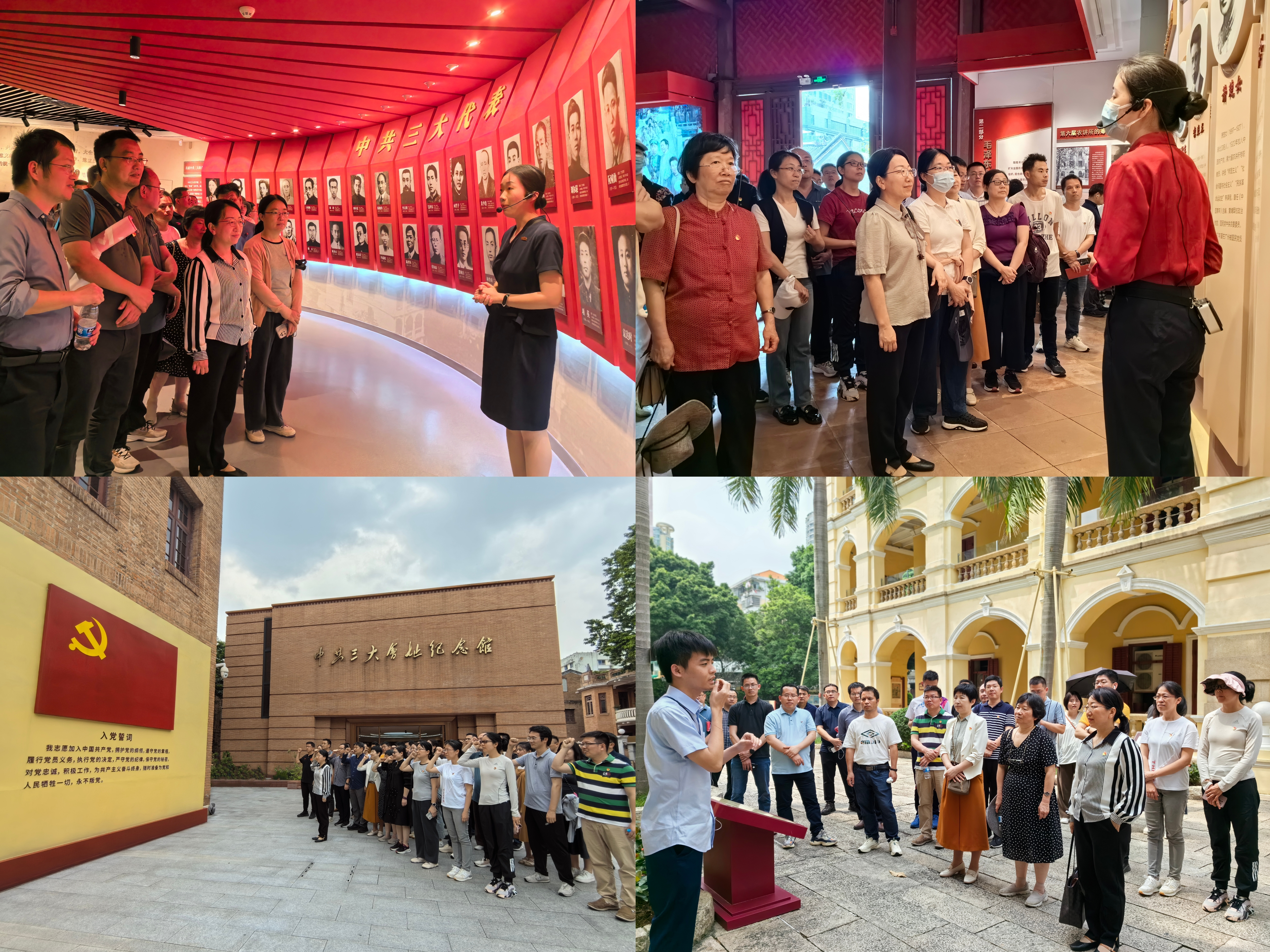 在广东民间工艺博物馆——陈家祠,祠堂内精美的雕刻艺术、精湛的工艺让党员们叹为观止,大家深刻感悟到工匠们的智慧与坚韧精神,深刻理解中国传统文化的博大精深;在孙中山大元帅府纪念馆,党员们参观了“帅府百年”复原陈列、“捍卫共和复兴中华——孙中山三次在广东建立政权”基本陈列等展览,身临其境般进入了革命先辈为革命事业奋斗的场景之中,学习孙中山先生“天下为公”的胸襟与家国情怀;在中共三大会址纪念馆,全体党员高举右拳,重温入党誓词,在一句句誓词中重温入党初心,更加坚定理想信念;在西关历史文化街区永庆坊,全体党员追随习近平总书记考察足迹,重温习近平总书记重要讲话,感受充满浓郁“广味”的新老店铺和谐融入新时代的西关画卷,感受城市在岁月流转中的历史变迁,体悟城市建设的传承与创新;在农民运动讲习所旧址纪念馆,党员们参观农讲所的历史文物、照片、资料等,深入了解当时中国农村的现状和农民的苦难处境,深入体会中国共产党为了推翻封建地主阶级和帝国主义压迫而进行的不懈斗争;在广州辛亥革命纪念馆,党员们跟随讲解员的步伐,系统学习了1895年至1917年辛亥革命前后近代中国社会在政治、经济、文化等方面的巨大变化,全面了解了辛亥革命的发展历程,重新审视了辛亥革命的历史功绩和历史意义,切身感受到革命精神的传递和历史使命的延续。