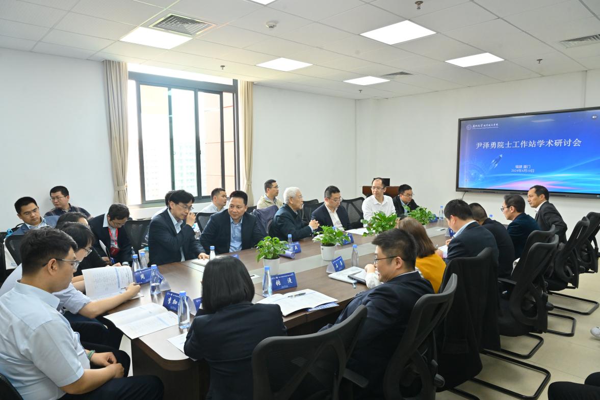 4月10日,尹泽勇院士工作站 学术研讨会 在翔安校区新工科研发大楼顺利召开,本次会议由厦门大学航空航天学院承办。中国工程院院士、原中国航空发动机集团公司科技委主任尹泽勇,中国航发商用航空发动机有限责任公司总经理梅庆、副总经理杜辉、副总工程师/科技发展部部长石英 、 先进技术研究部副部长(主持工作)侯乃先等9位专家,中国航发湖南动力机械研究所总设计师/集团 级 专职总师李维 、 发动机结构强度研究部 党总支 书记/副部长李坚等10位专家,厦门大学校党委常委 、 副校长尤延铖 ,能源学院副院长郑志锋、国家高层次人才/ 航空航天学院副院长卿新林 、 航空航天学院 副院长 黄玥 、国家高层次人才 罗华耿等40余位教师参加会议。中国航发商用航空发动机有限责任公司、中国航发湖南动力机械研究所、厦门大学三家单位展开交流与研讨,共商深化产学研合作相关事宜。