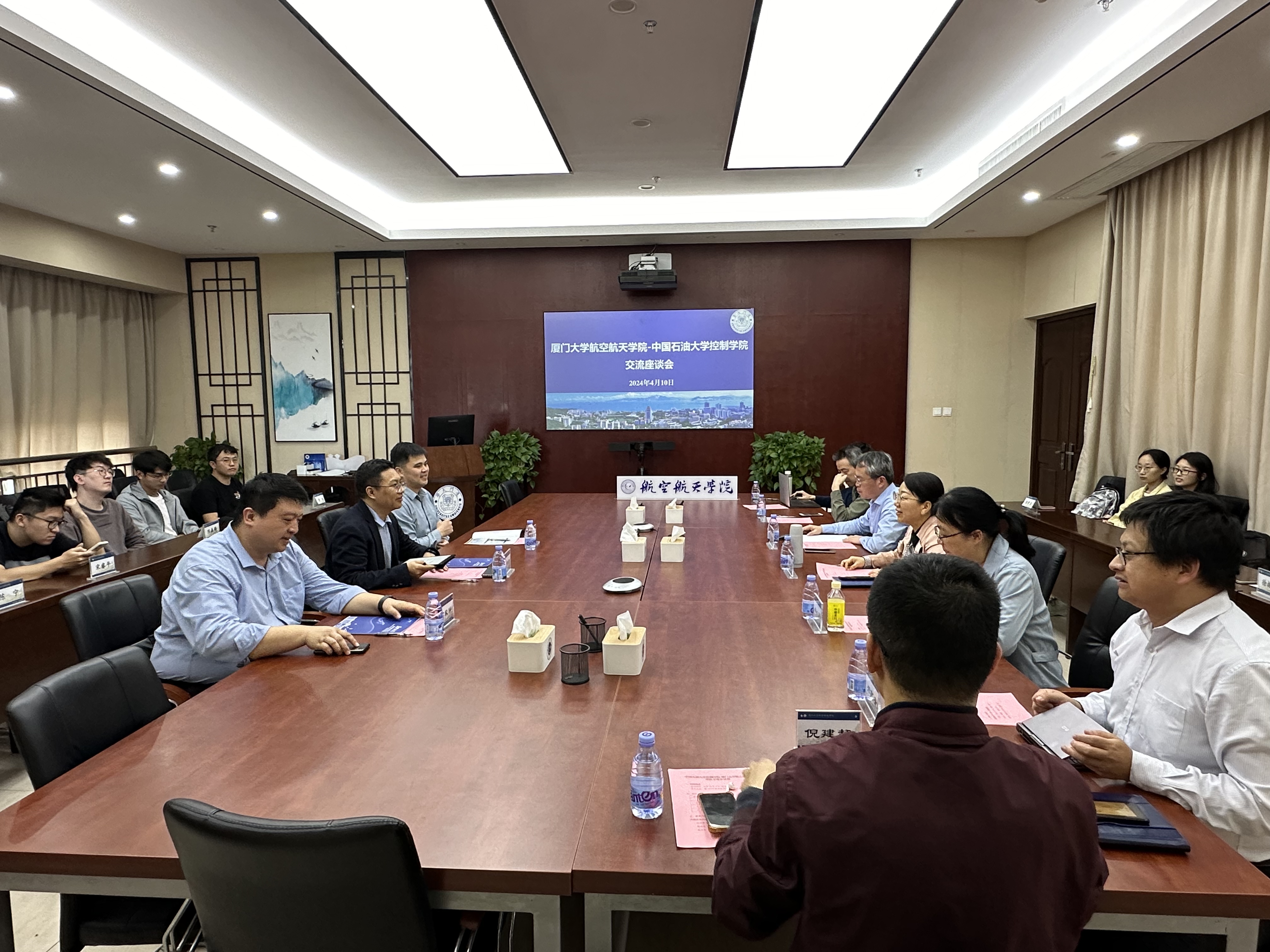 陈鸿龙介绍了中国石油大学(华东)控制科学与工程学院的发展概况、科研方向以及学生培养、人事招聘等工作开展情况。刘伟锋表示,学院与厦门大学航空航天学院类似,也经历了院校调整等历史变迁。作为有行业背景的高校院系,在前期既有的发展基础上,学院将主动对标对表国家战略需求,把需求内化并嵌入到自身的发展逻辑中。希望双方互相借鉴、共同进步。