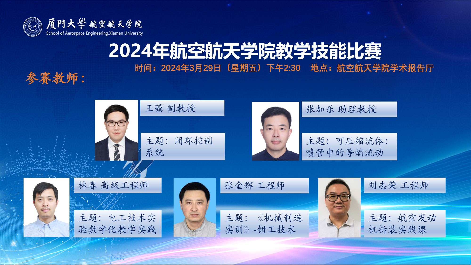 为更好落实立德树人根本任务,切实提升我院教师的教学技能,在院工会和教学支撑中心的共同组织下,航空航天学院第十九届教师教学技能比赛于3月29日下午在院楼报告厅顺利举行。