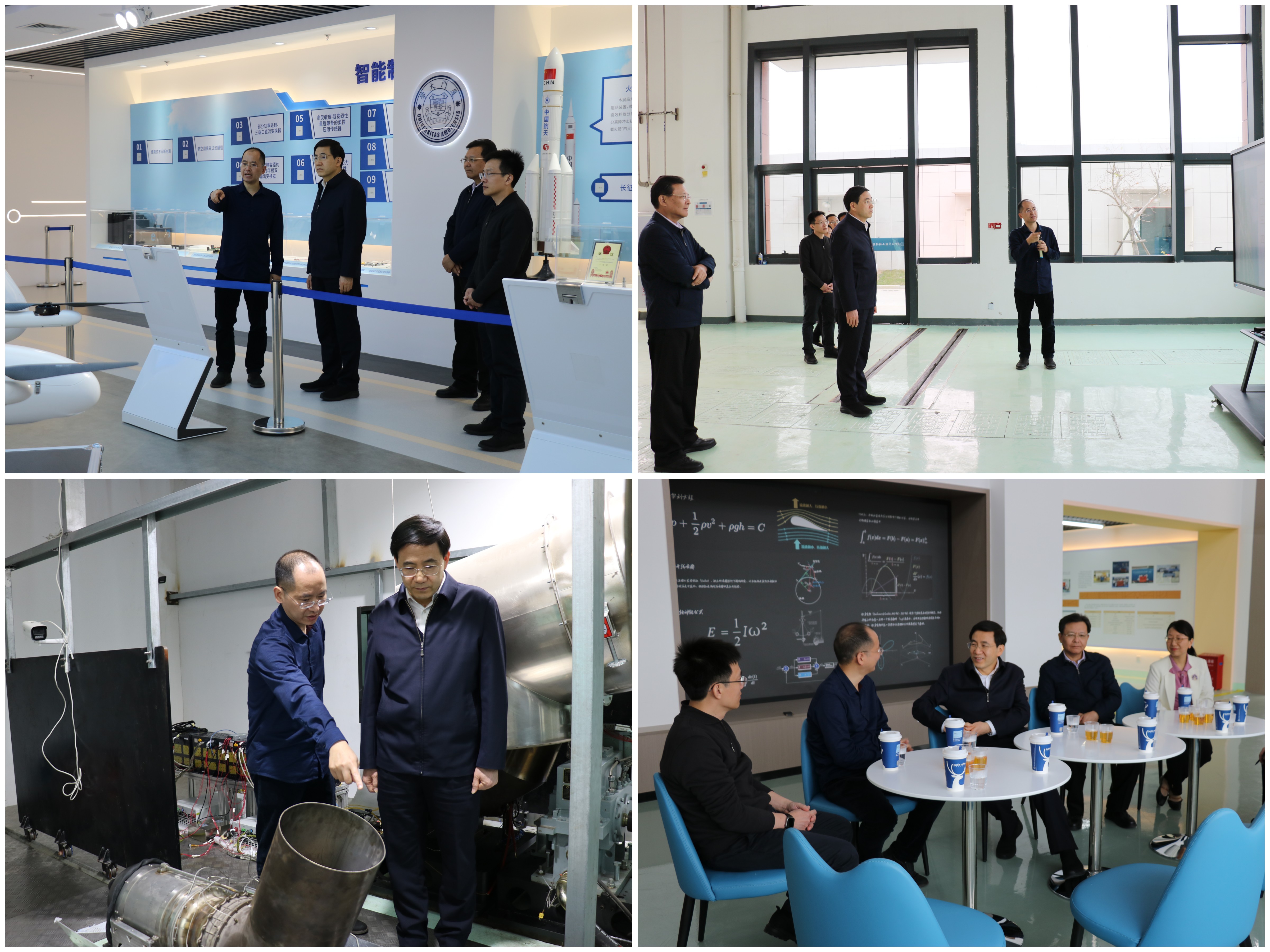 黄海昆一行先后考察新工科科技馆、飞发控制一体化技术验证联合实验室、风洞与直连燃烧实验室、新能源航空发动机整机试车台并与尤延铖教授深入交流探讨科技创新,了解学院在航空航天领域的重要科研成果,认真听取关于高水平科技攻关、高质量建设科技平台、加强基础研究、推进科技成果转化和多领域应用、培养拔尖科技创新人才、打造新质生产力等的意见建议,并现场协调为相关科研项目纾困解难。