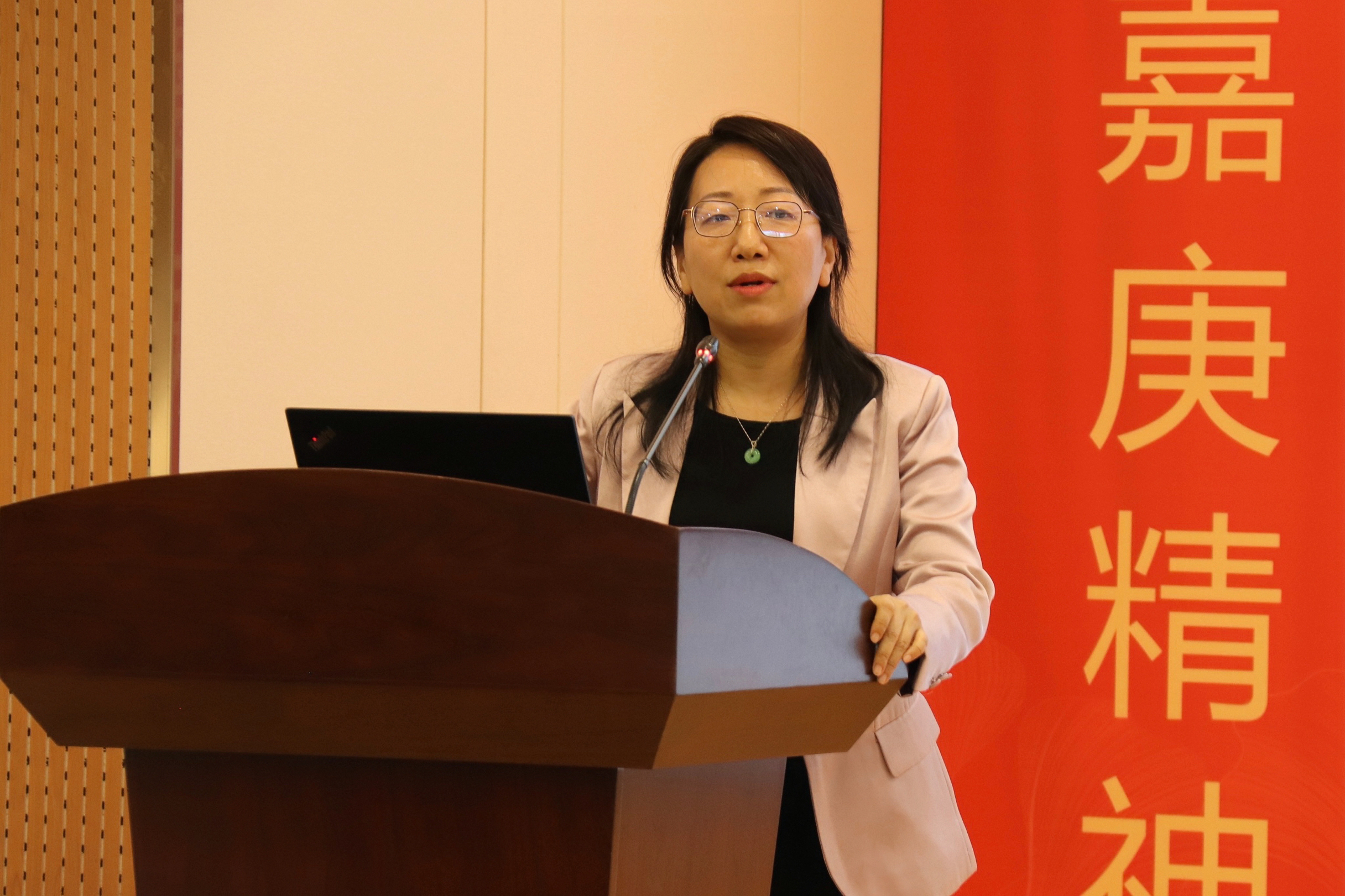 仪式后,廖志丹做学院2023年党委工作报告,从党建引领锚定圆心、创新理论拉长半径、师生立场延展圆弧、奋斗画卷铺就圆面四个方面总结了过去一年来,学院党委在以高质量党建引领事业高质量发展方面所取得的新进展、新成效。她表示,新的一年,希望全体教职工直面机遇挑战,在新时代新征程上奋力回答好“强国建设,航院何为”的课题。