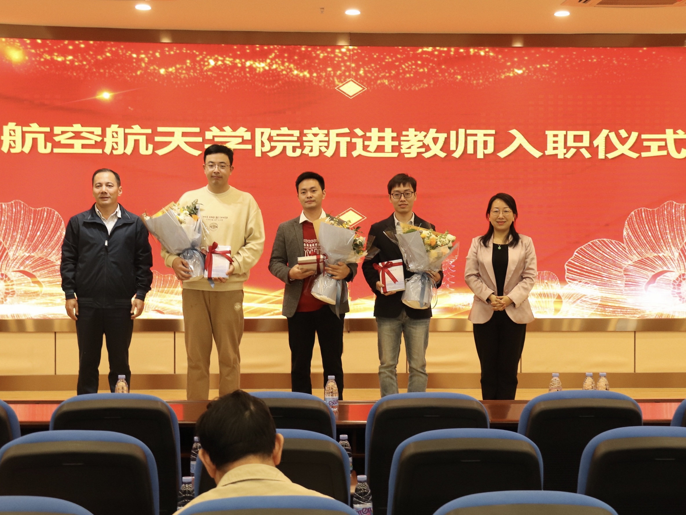 立德树人,薪火相传。大会首先举行退休教师荣退和新教师入职仪式。2023年,学院有姚斌、席斌、吴晓明三位老师退休,会上学院对三位老师为教育事业和学院、学生的付出致以衷心的感谢。2023年,学院也迎来了郑宜生、陈玉乾、张加乐三位新入职老师,廖志丹和卿新林为三位老师赠送鲜花和书籍《什么是好大学?》,对他们的加盟表示诚挚的欢迎,希望他们尽快融入团队,成为团队的中坚力量,不断提升专业能力,努力成为受学生喜爱的教师。