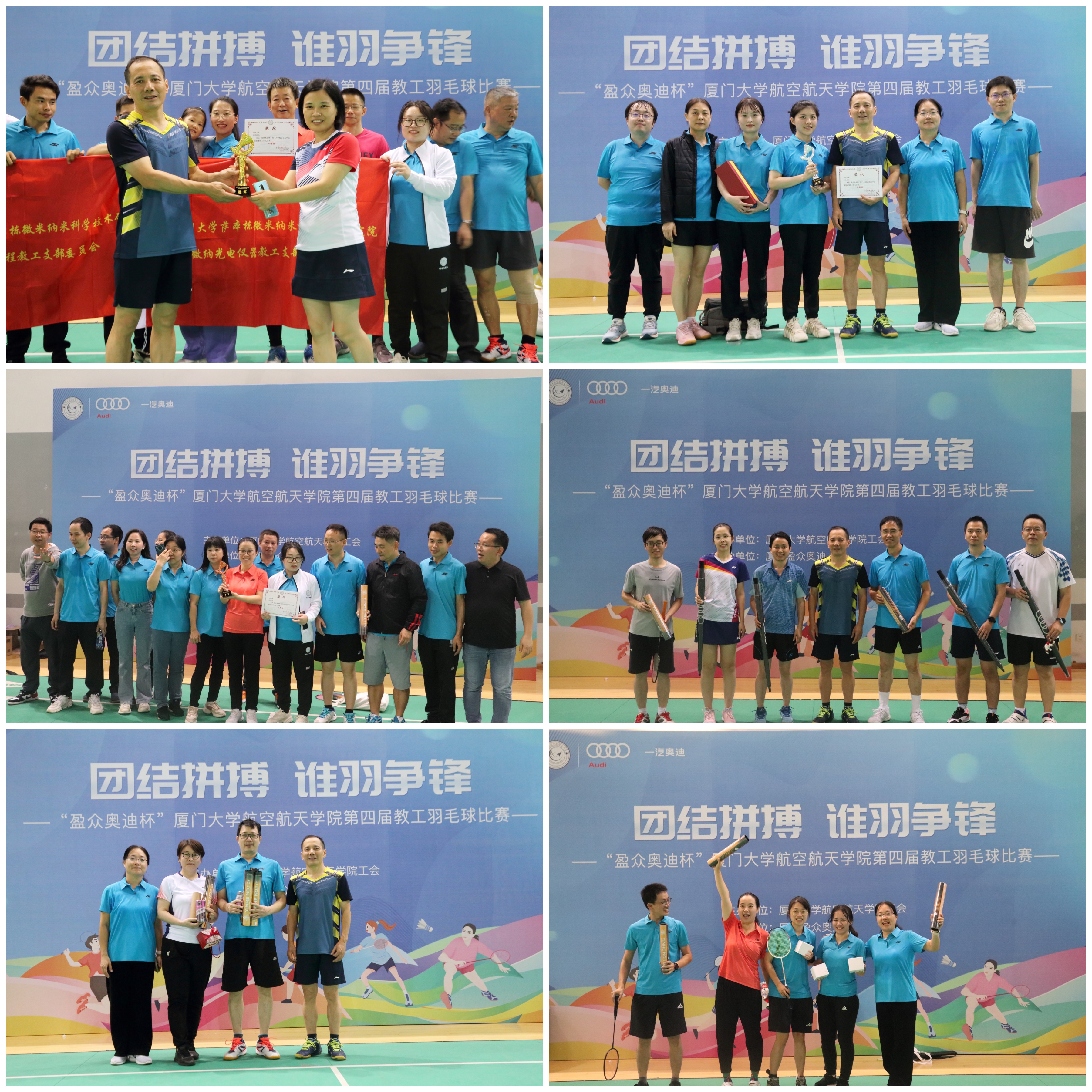 为深入学习贯彻党的二十大精神和中国工会十八大精神,切实推进实施全民健身国家战略,丰富教职工业余文体生活,航空航天学院工会于12月11日在爱秋体育馆举办“盈众奥迪杯”第四届航空航天学院教职工羽毛球赛。学院党委书记廖志丹参加开幕式并致辞,副院长卿新林,党委副书记林蔚、王寒等参加活动。