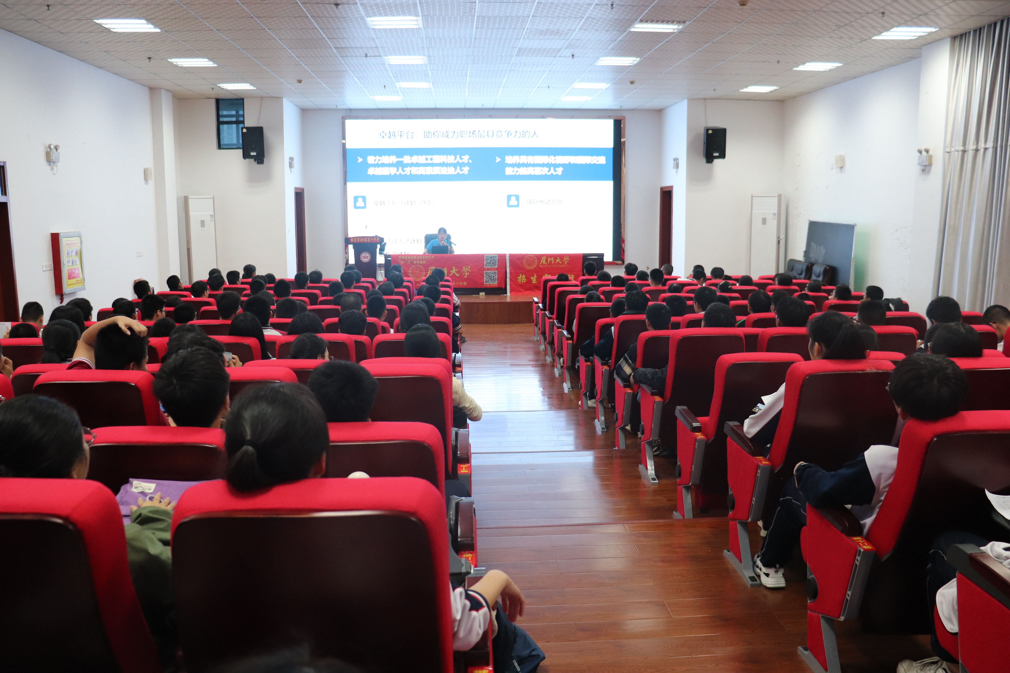 张琳从厦门大学是所怎样的学校、在厦门大学学习有怎样的体验、厦门大学毕业生发展怎样以及如何进入厦门大学学习四个方面进行宣讲,并和现场的学弟学妹们展开交流。她提醒同学们,人生会面临很多抉择,要综合自身兴趣爱好冷静思考,把个人实际与社会需要结合起来,希望能与学弟学妹们在不久的将来相聚厦园,共同为国家的发展贡献力量。