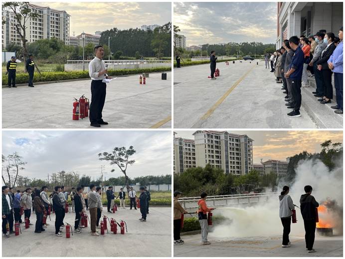 讲座结束后,灭火培训和实操演练在新工科研发大楼正门广场举行。学院党委副书记王寒作动员讲话,并强调全体师生要熟练掌握消防安全基本知识,定期参加消防灭火培训和疏散演练,确保在实验室火灾发生时具有扑救初起火灾和引导人员疏散的能力。