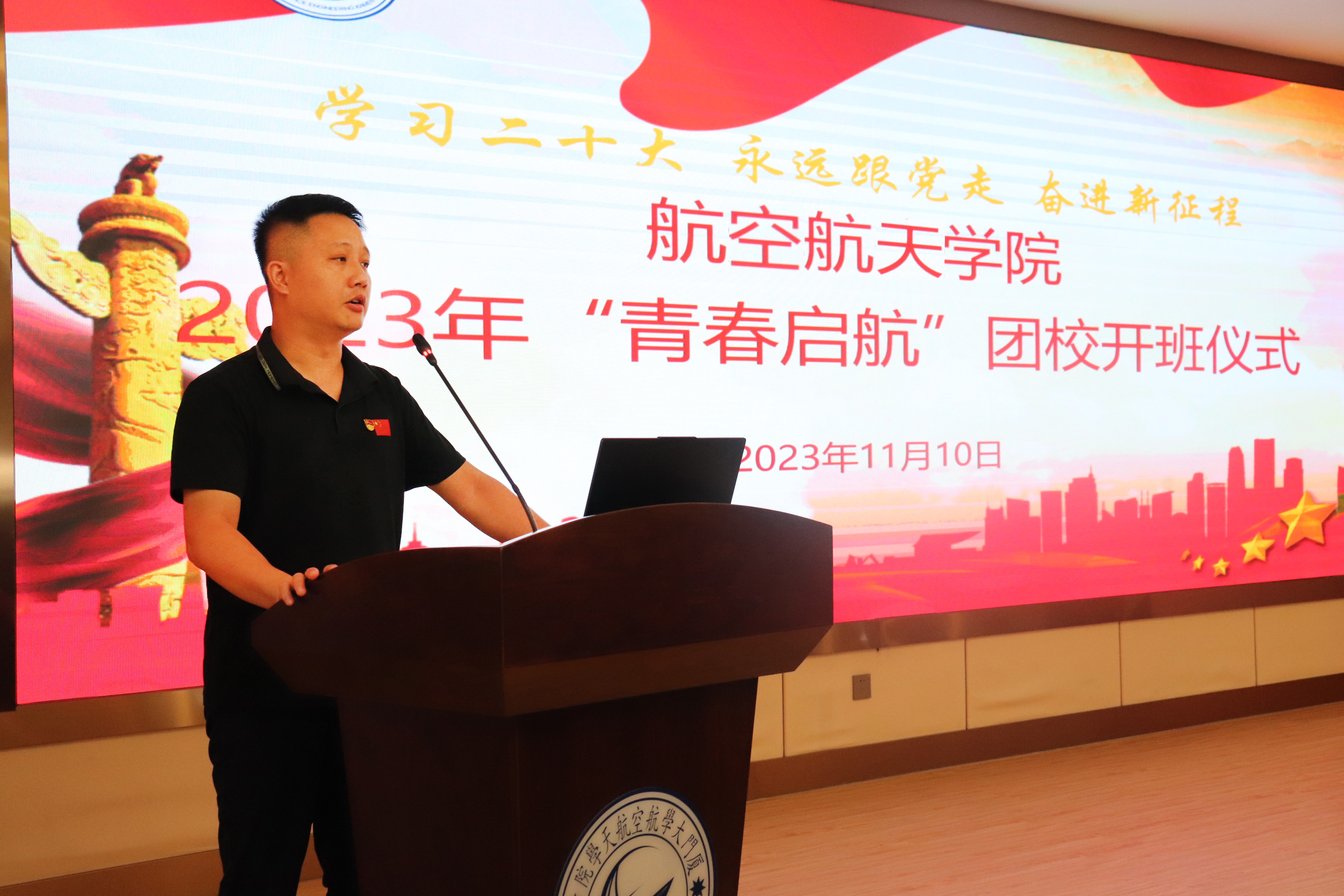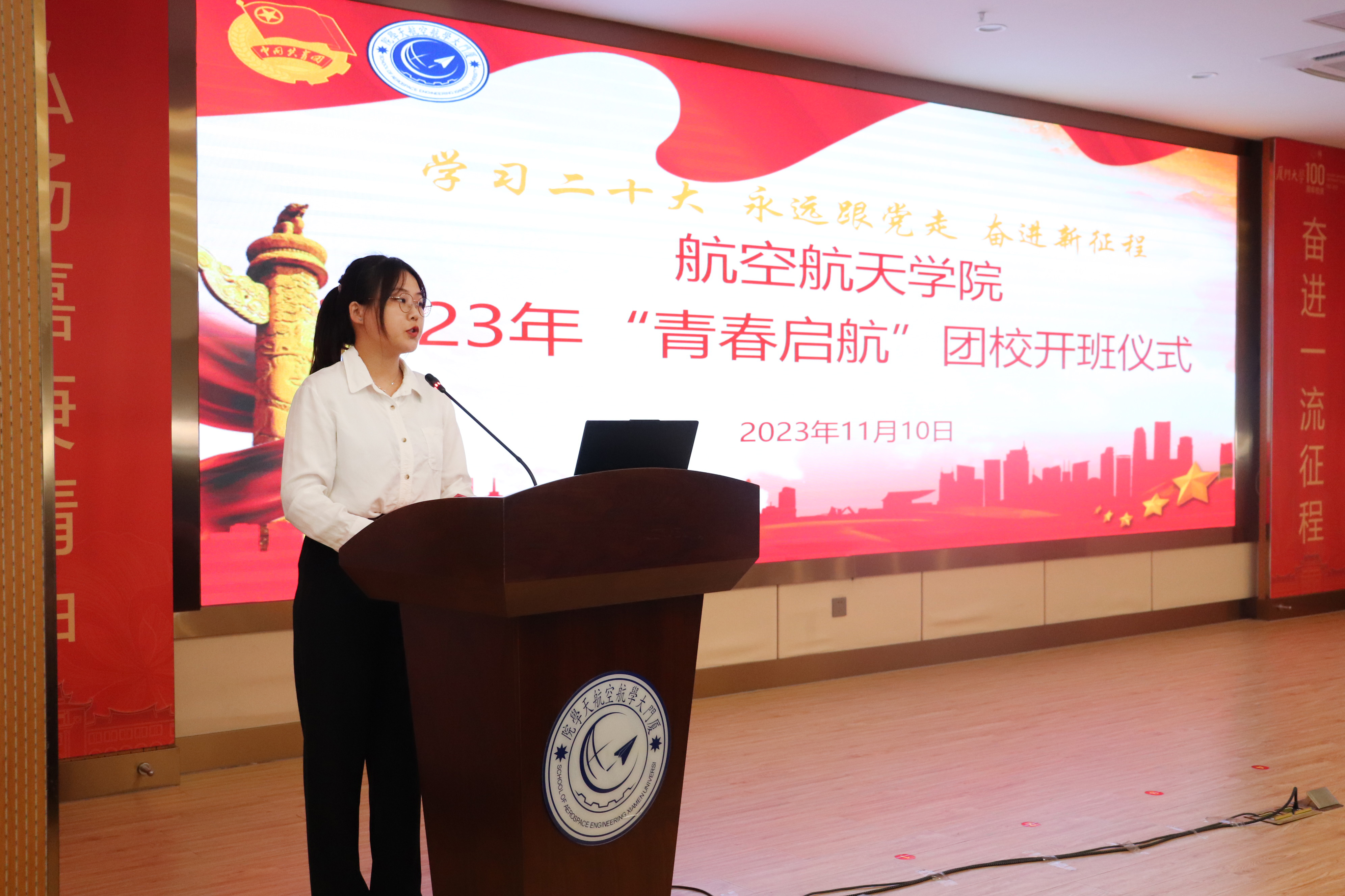 为强化学生干部的思想认识和政治素养,提升学生干部综合素质和业务能力,11月10日中午,航空航天学院2023年“青春启航”团校开班式在院楼547报告厅顺利举行。学院党委副书记王寒,学工口辅导员,学院各学生组织负责人及成员参加了开班式。开班式由2023级本科生李隆祺、黄敬迪主持。