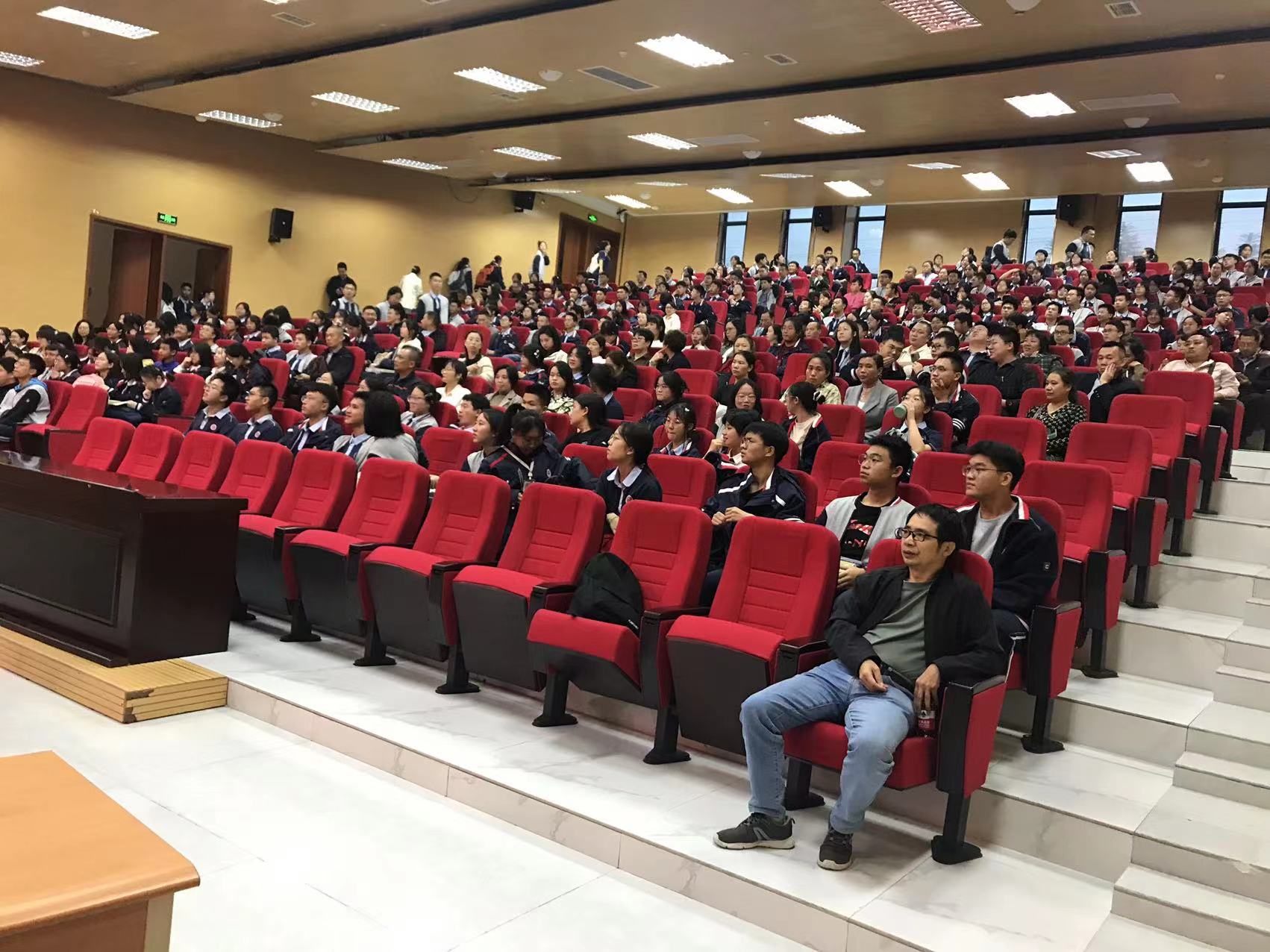科普讲座结束后,由孙怀清开展招生宣讲。他采用视频、图片、文字多层面结合的方式介绍了学校悠久的发展历史、学科建设情况、科学研究平台、创新育人理念,以及背山面海的独特校园风光、浓厚的校园文化底蕴、高水平的科研成果等,并解答了师生、家长关心的优势学科、人才培养、招生类别、专业设置、录取规则等问题。