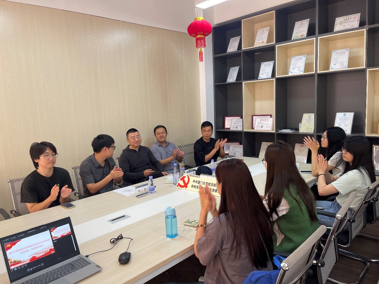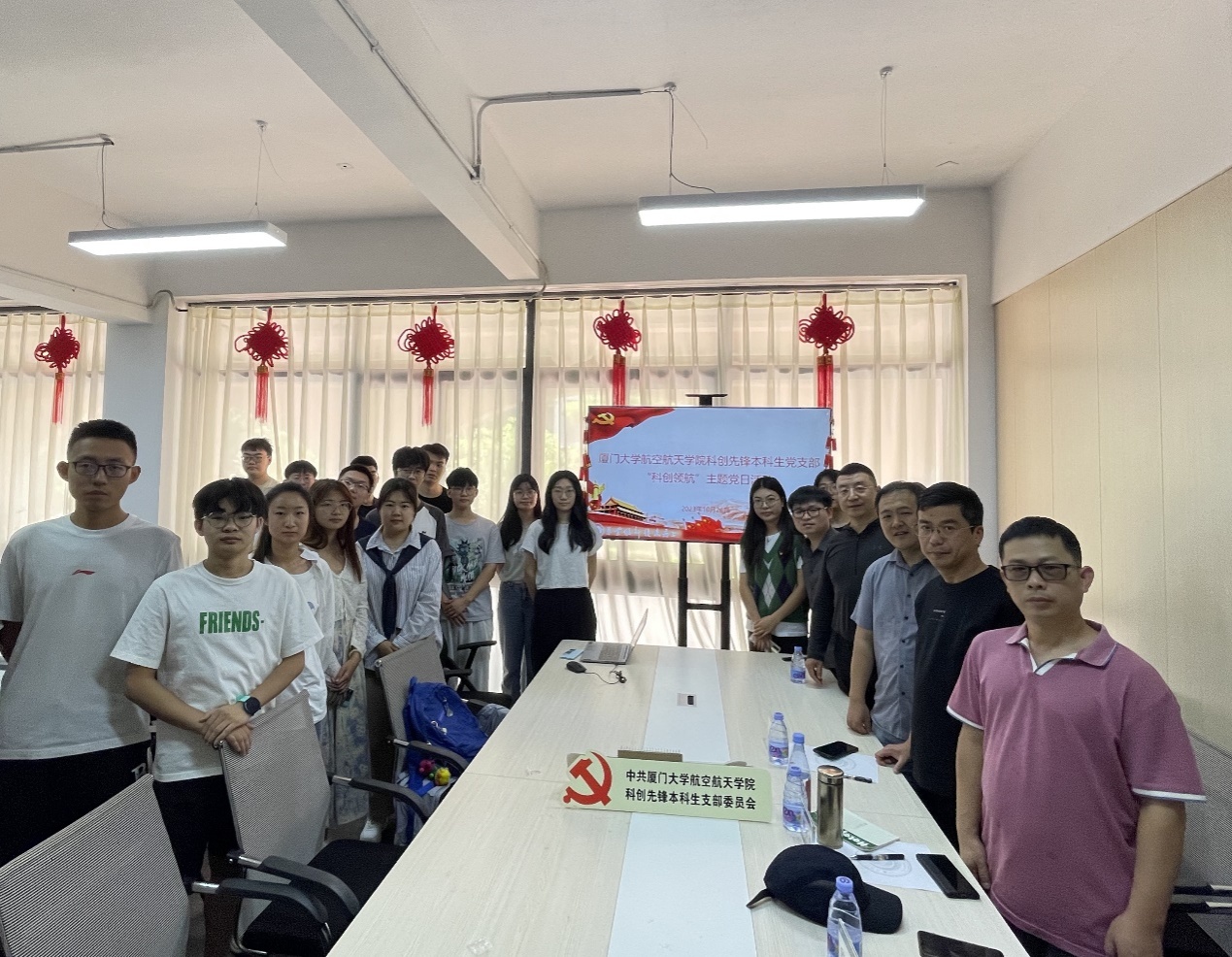 为加强党建引领大学生科创工作高质量发展,提升科创团队创新创业能力,10月26日上午,航空航天学院科创先锋本科生党支部在博学八“一站式”科创空间开展“科创领航”主题活动。中国“互联网 +”大学生创新创业大赛专家委员会委员、国赛评审专家周洛宏,高级创业指导师、“互联网+”国赛评审专家傅许坚,厦门大学现代教育技术与实践训练中心实创部部长欧阳童洁,航空航天学院辅导员刘群,科创先锋党团支部成员、科创团队代表等参加活动。