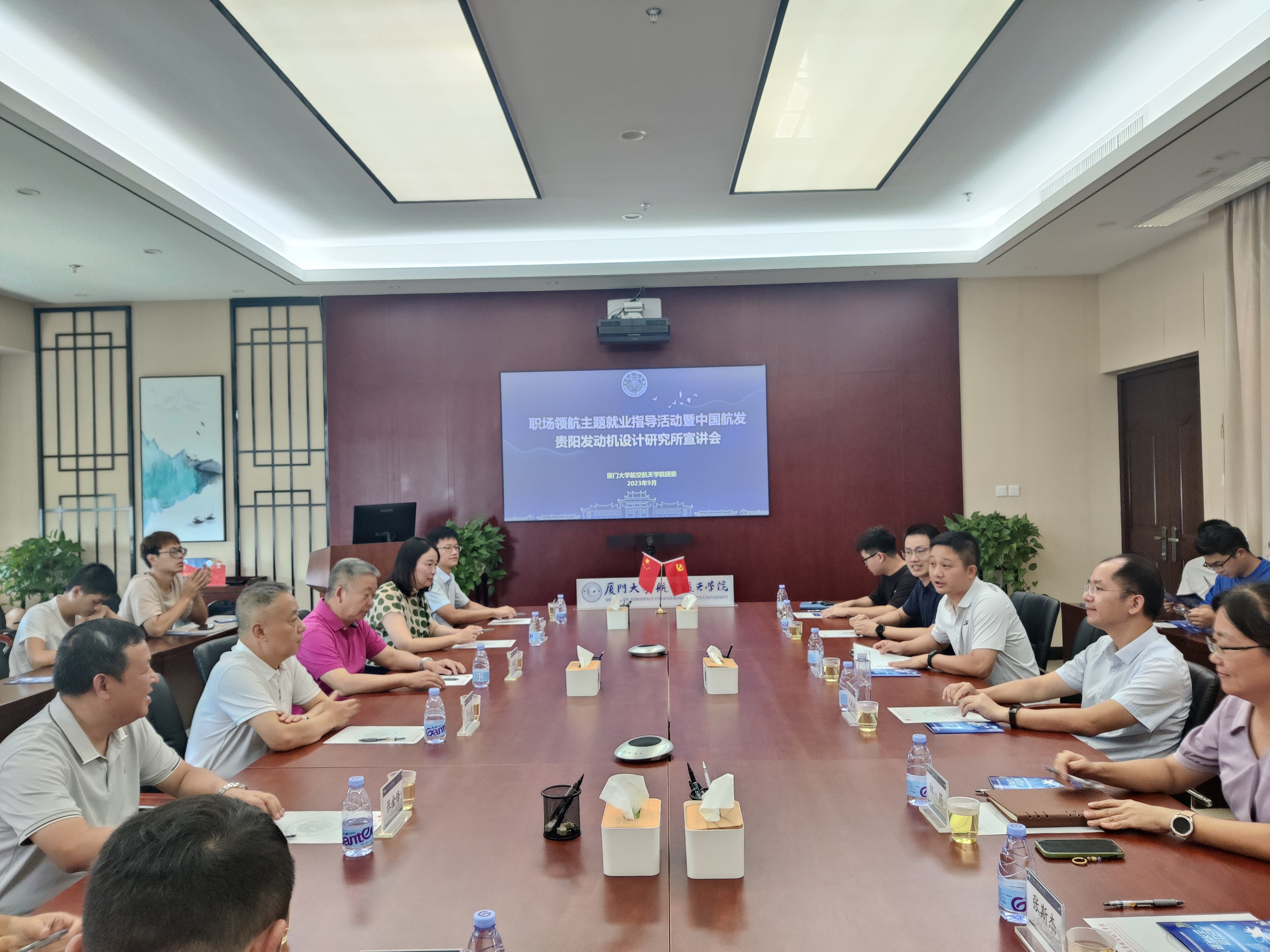 9月19日,中国航发贵阳发动机设计研究所所长、党委副书记李永康,党委书记、副所长李湘宁,副所长张金锋,综合管理部部长马岚,科研部部长何顺林,人力资源部副部长(主持工作)马永锋等一行莅临厦门大学航空航天学院开展走访交流。