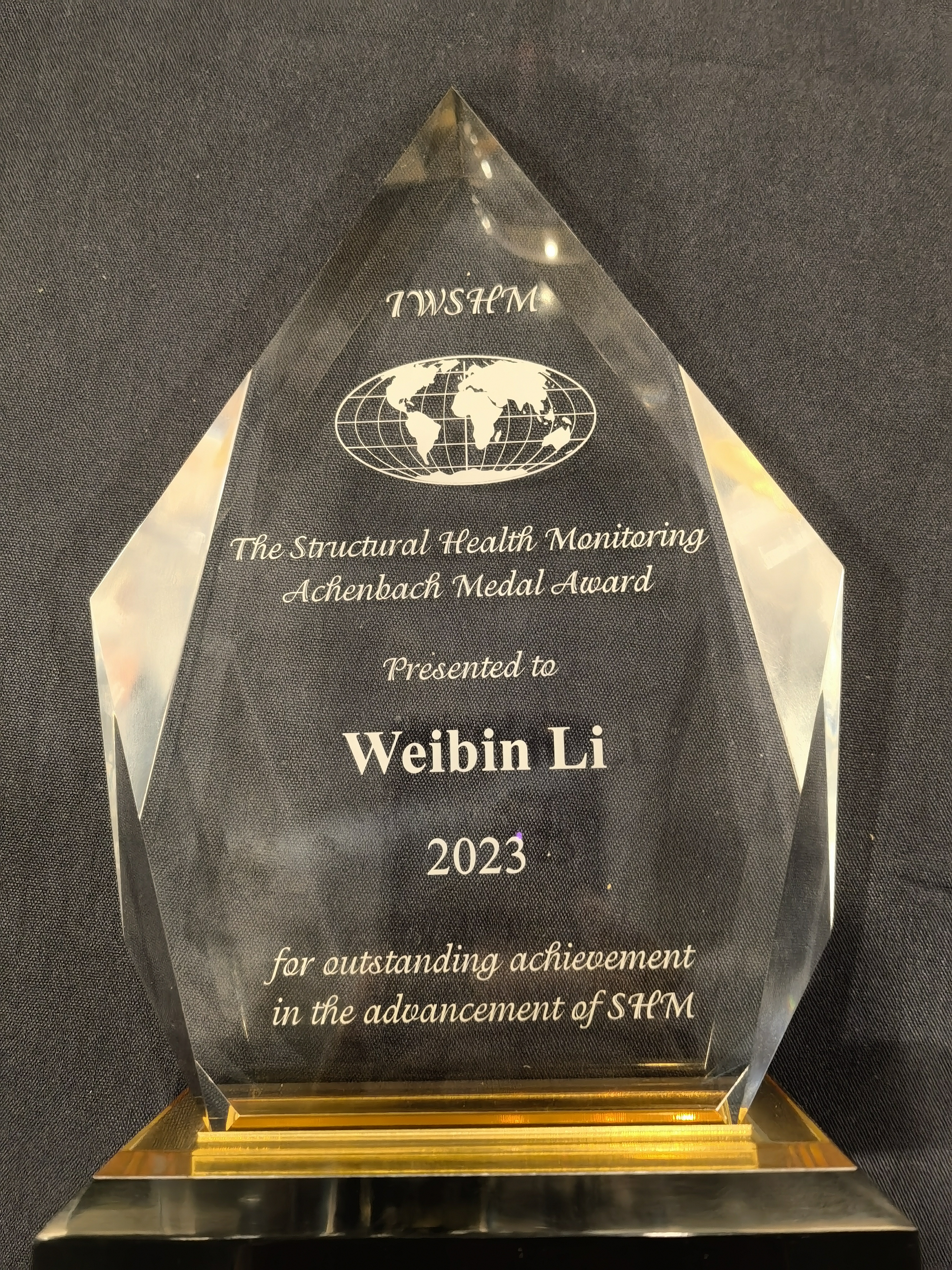Achenbach奖是为了纪念美国国家科学奖章、美国国家技术奖章获得者,美国三院(科学院、工程院和科学与艺术院)院士Achenbach教授,由国际结构健康监测学术界设立的用于奖励博士毕业10年以内,在无损检测/结构健康监测领域作出突出贡献的青年学者。Achenbach奖的评选程序十分严格,其评奖章程规定每年仅从全球提名人选中遴选1人。李卫彬教授此次获得2023年Achenbach奖,再次证明其在国内近10年的科研工作已受到该领域国际学术界的高度认可。