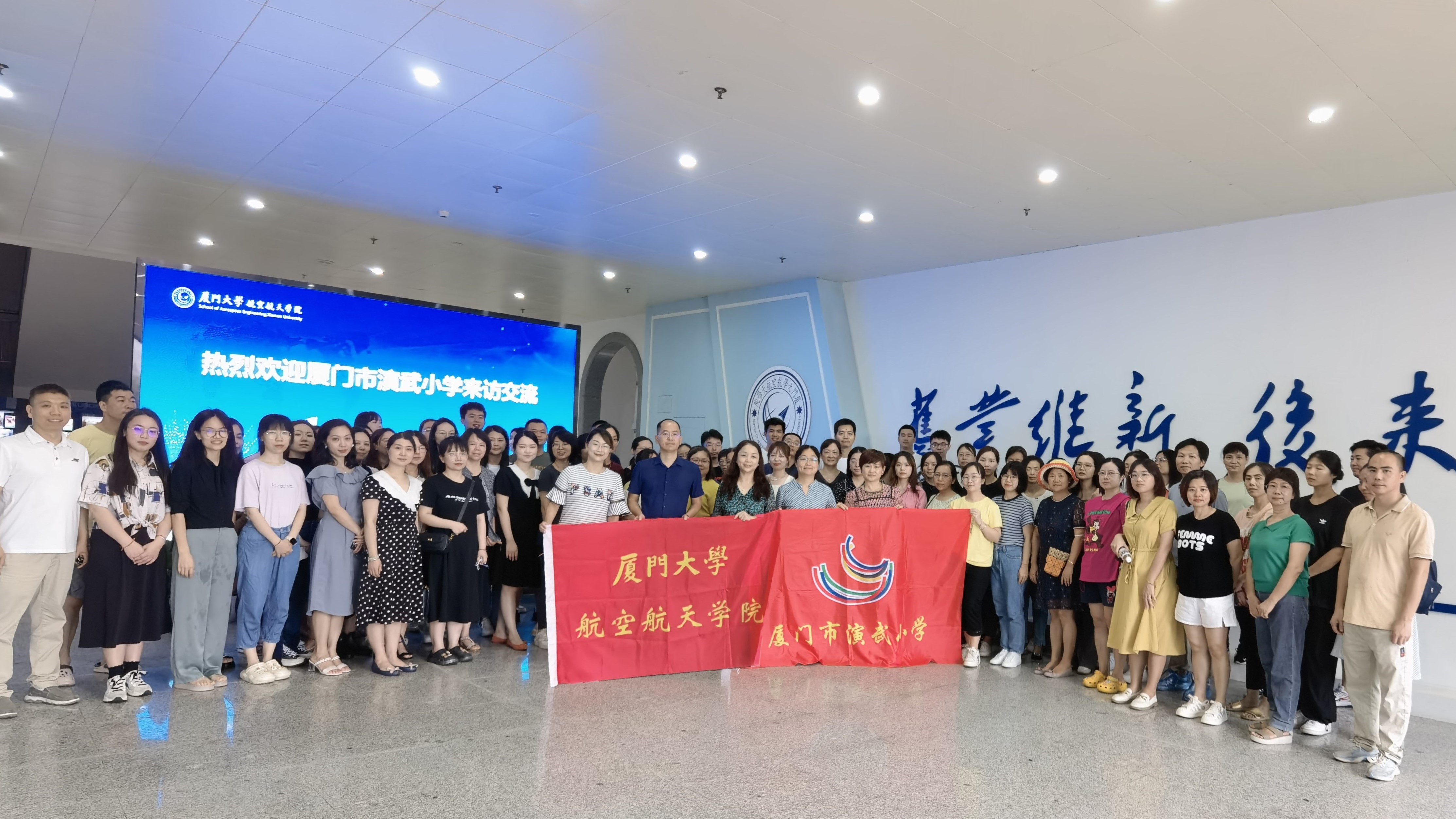8月20日,厦门市演武小学校长王志勤率学校一百余名教师来我院参访交流。学院常务副院长尤延铖、党委副书记林蔚等参加活动。