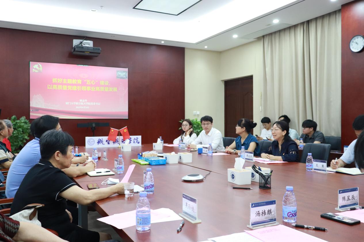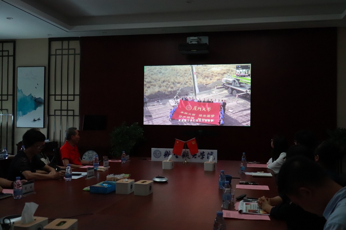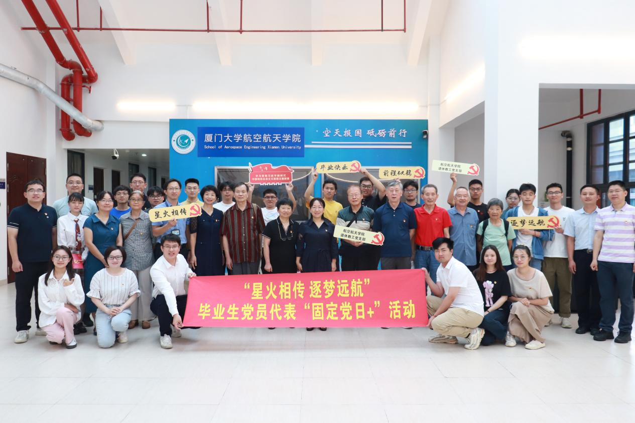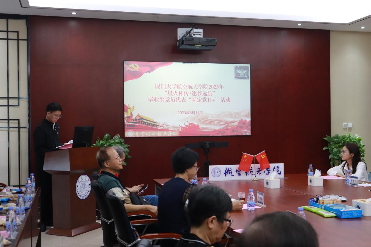 6月14日,航空航天学院2023年“星火相传•逐梦远航”毕业生党员代表“固定党日+”活动在院楼501会议室举行。校离退休工作部部长曾坤瑜,校主题教育第七巡回指导组副组长、学生工作部副部长高斌,航空航天学院党委书记廖志丹,院党委副书记、常务副院长尤延铖,院党委副书记林蔚、王寒,院退休教工党支部书记蔡建立,辅导员,退休教师党员代表及毕业生代表参加活动。同时,毕业生代表在映雪5“一站式”学生社区分会场连线参加活动。