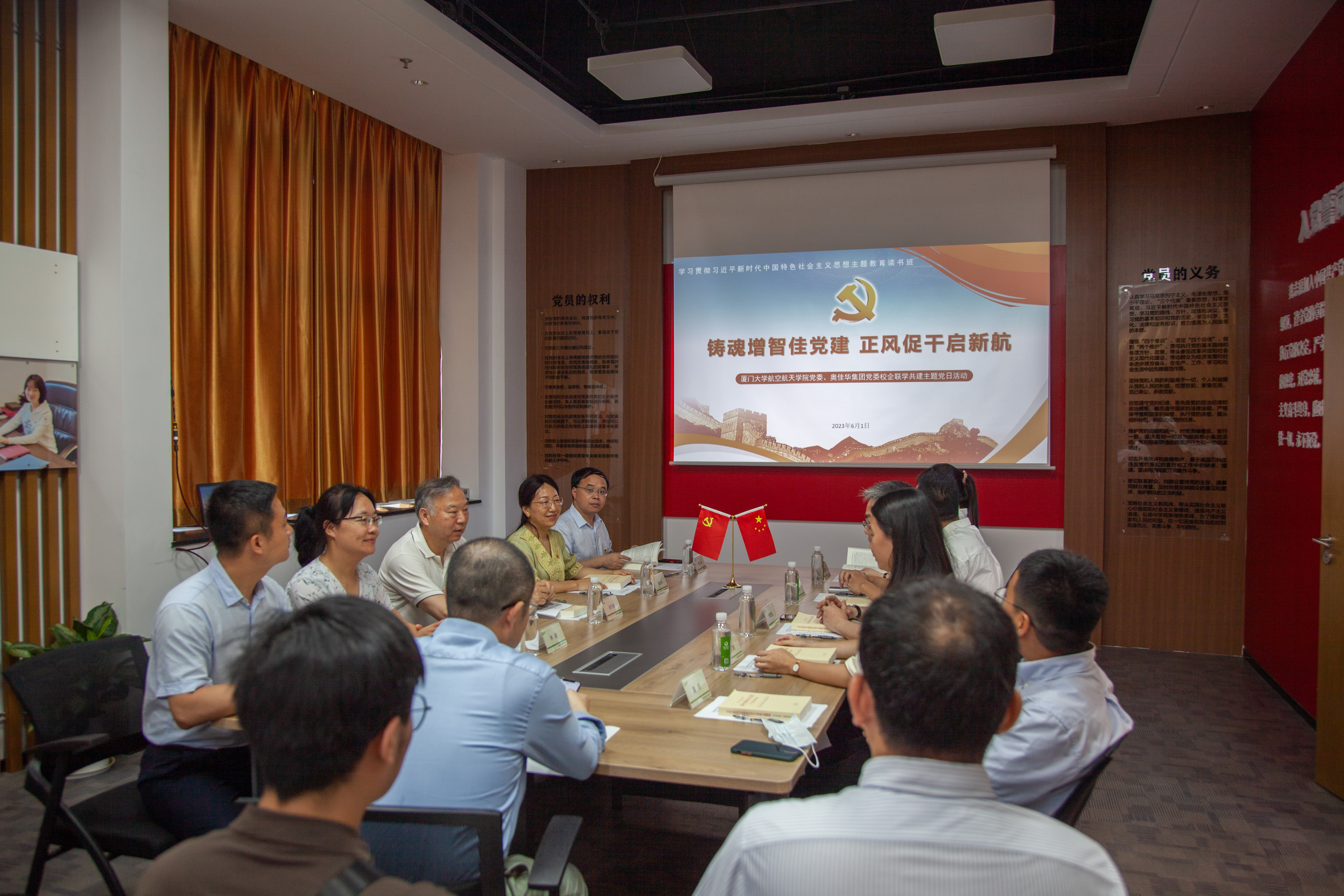为深入开展学习贯彻习近平新时代中国特色社会主义思想主题教育,6月1日上午,厦门大学航空航天学院党委师生代表一行赴厦门奥佳华智能健康集团开展“铸魂增智佳党建,正风促干启航程”校企联学读书班活动,通过读原著、学原文、悟原理,进一步深入学习习近平总书记关于教育、科技创新的重要重要论述。