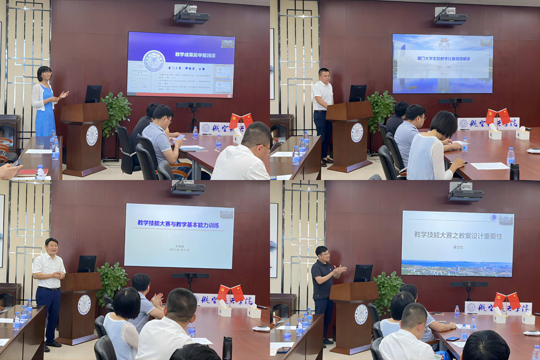 接着,邵桂芳副教授、许英杰高级工程师、祝青园教授、蔡志钦助理教授分别以“教学成果奖申报浅谈”、“厦门大学实验教学比赛规程解读”、“教学技能大赛与教学基本能力训练”和“教学技能大赛之教案设计重要性”为题逐一做教学教改经验分享。