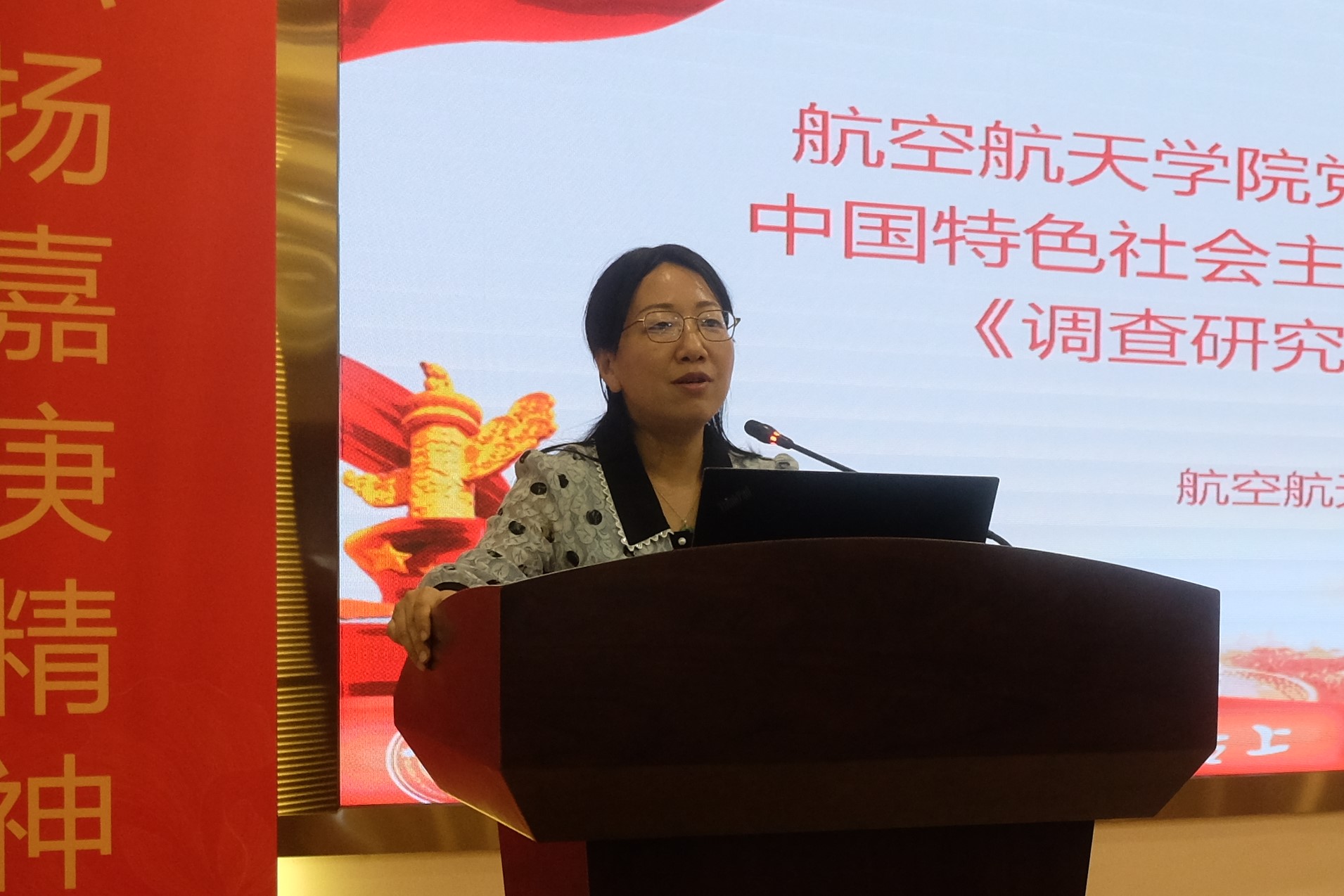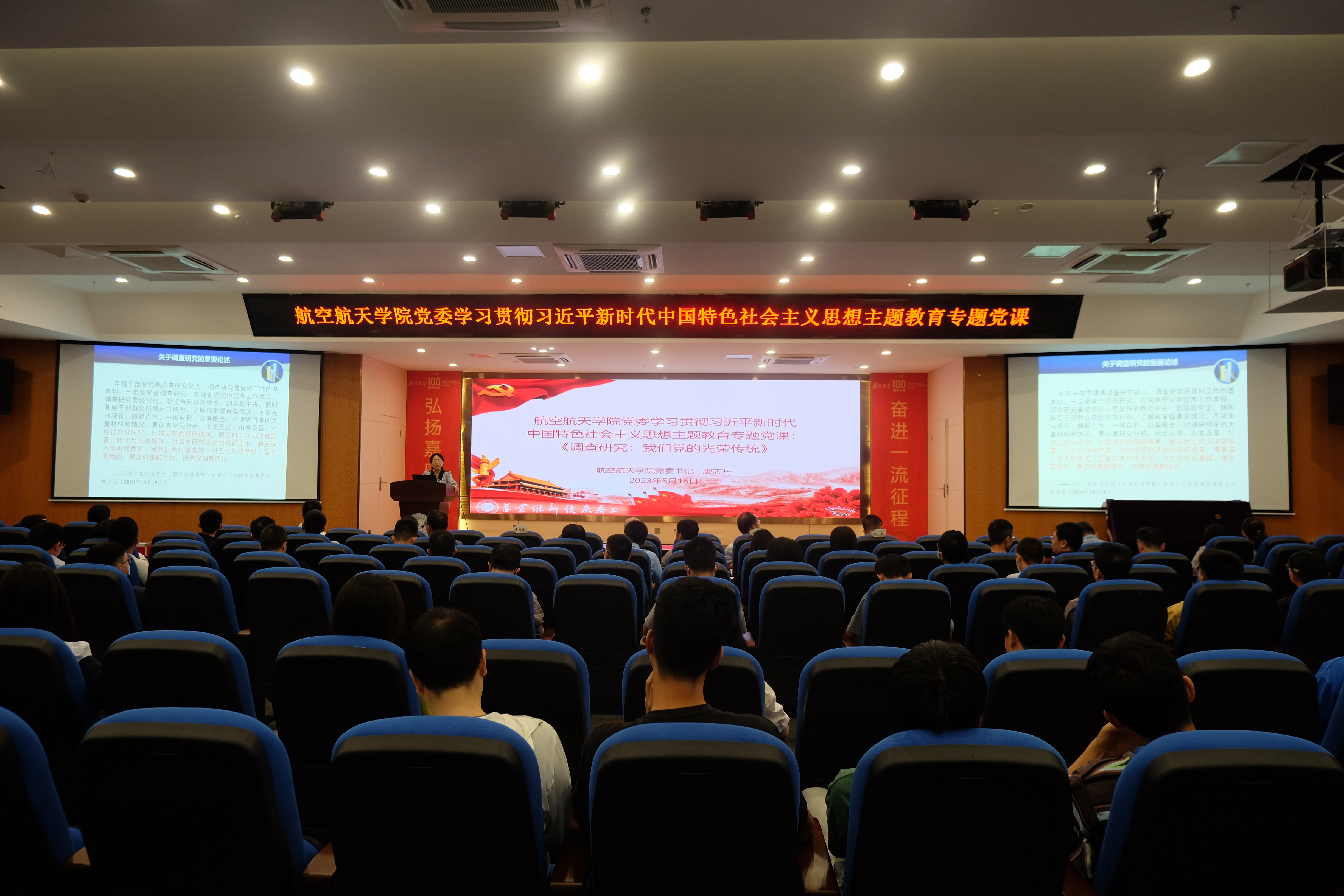 5月16日下午,航空航天学院党委学习贯彻习近平新时代中国特色社会主义思想主题教育专题党课《调查研究:我们党的光荣传统》在院楼547报告厅开讲,由学院党委书记廖志丹讲授。学校主题教育第七巡回指导组组长、基层党建工作联络员邵鹏飞老师出席本次党课。学院党委委员、党政领导班子成员、师生党支部代表参加学习。