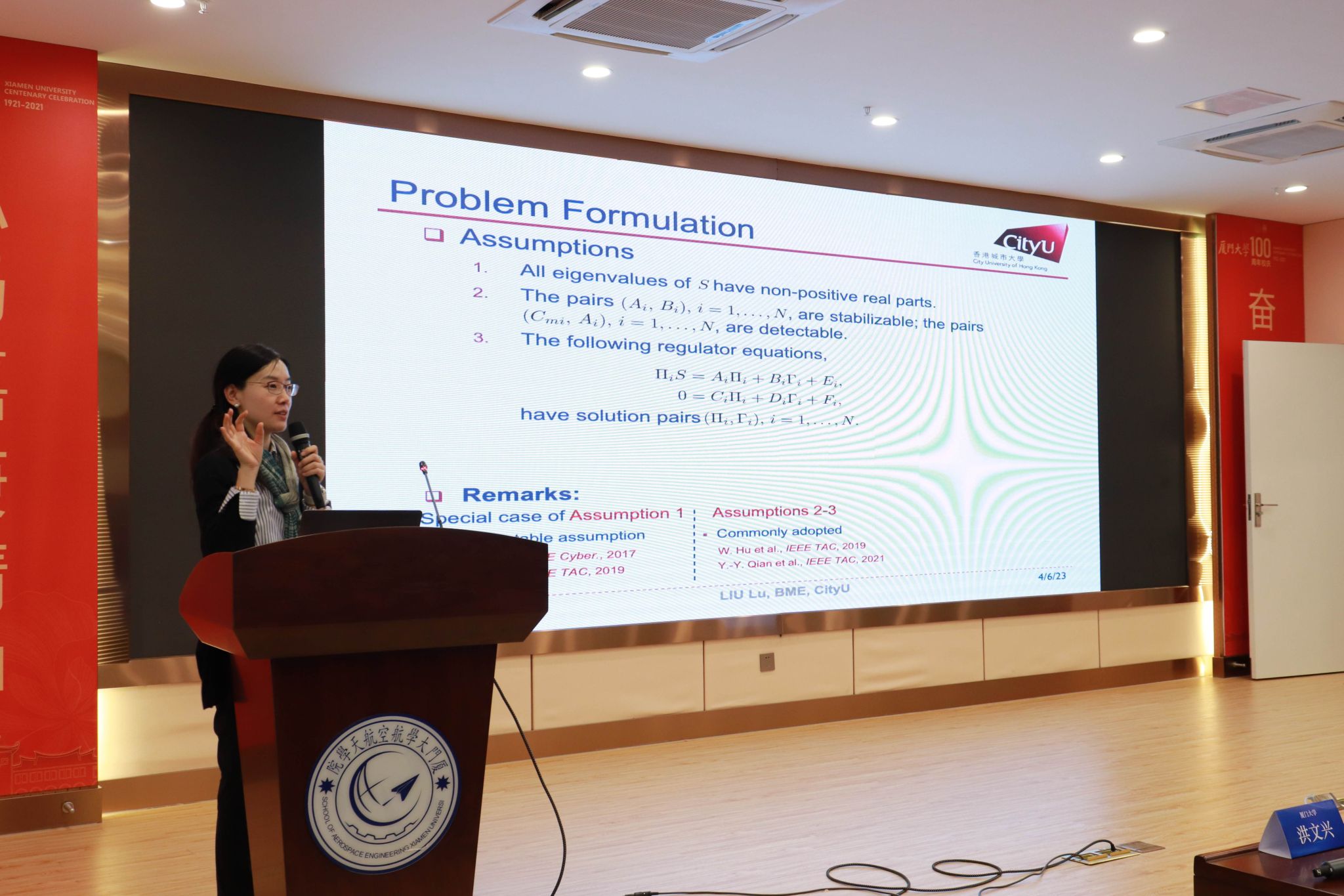 2023年4月6日下午,作为庆祝厦门大学建校102周年学术活动之一,2023厦门大学系统与控制高峰论坛成功举办。欧洲科学院外籍院士、香港理工大学讲座教授翁齐浩,香港城市大学教授刘璐,香港中文大学研究助理教授陈曦分别做主题演讲。新加坡工程院院士、香港中文大学教授陈本美,香港理工大学助理教授杨明参与研讨。厦门大学航空航天学院党委书记王康平、副院长王颖出席论坛,自动化系主任洪文兴教授主持。