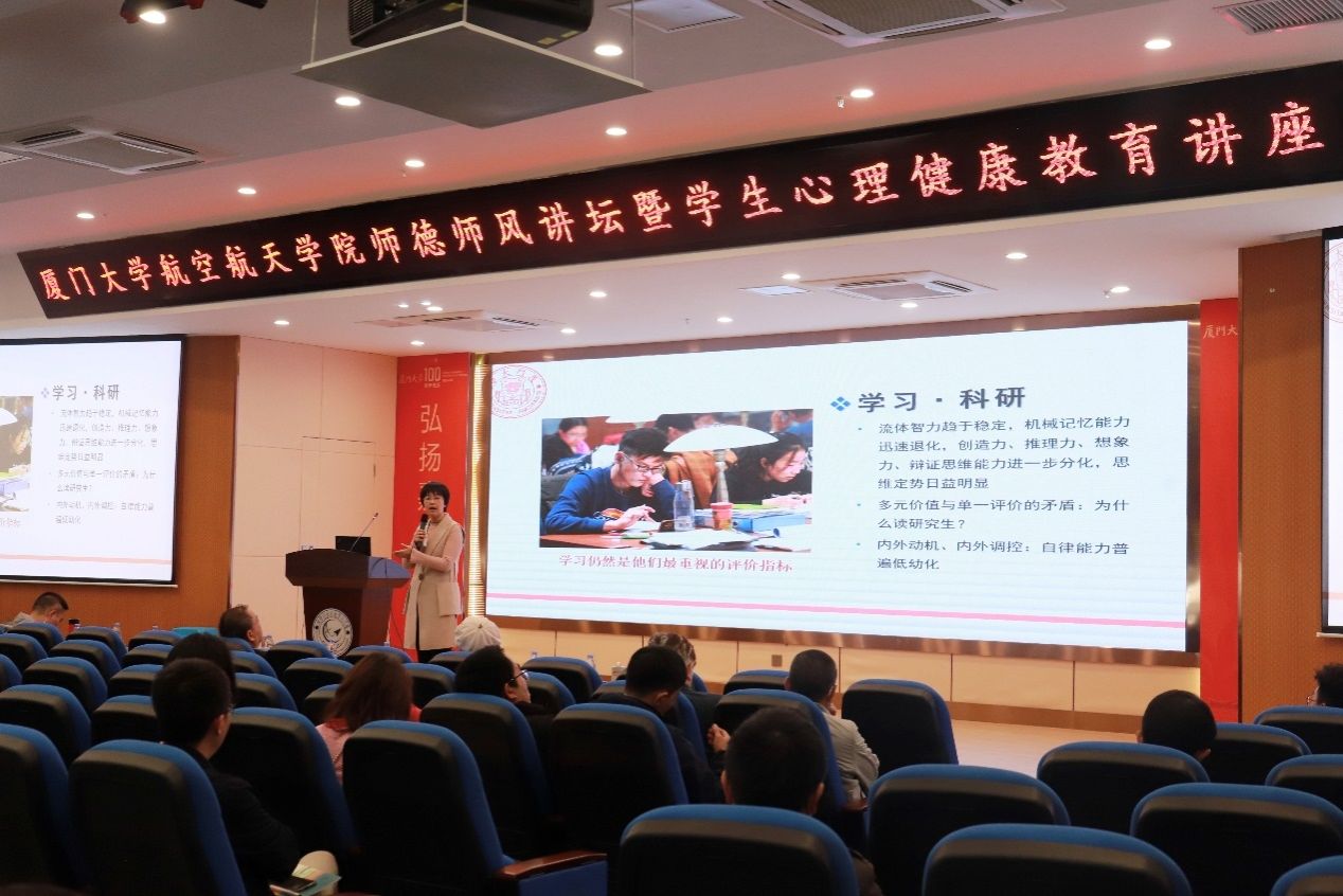 3月6日下午,航空航天学院在学院报告厅举行师德师风讲坛暨学生心理健康教育讲座,邀请厦门大学心理咨询与教育中心主任赖丹凤副教授作题为《大学生心理问题及应对方法》的专题报告。报告会由学院党委副书记林蔚主持,学院全体教职工参加学习。