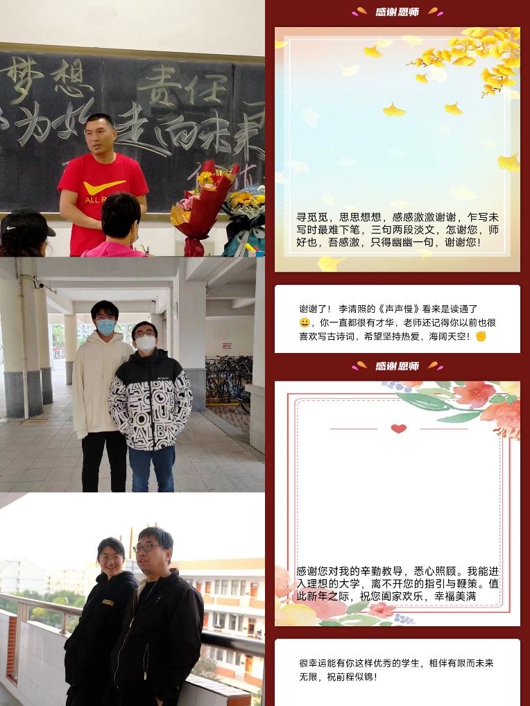 桐城2022队不仅采用“感谢师恩”公众号对老师遥寄祝福,还重回母校桐城市昌亭初级中学,登门拜访老师们。秀山秀水队的邓军模仿李清照的《声声慢》创作诗词献给恩师,呈现满满心意与创意!南一2022队傅诗铭在收到恩师陈明智老师回复后受到莫大的鼓舞,下定决心不负恩师教导,好好学习,继续勤勉努力!