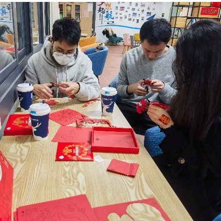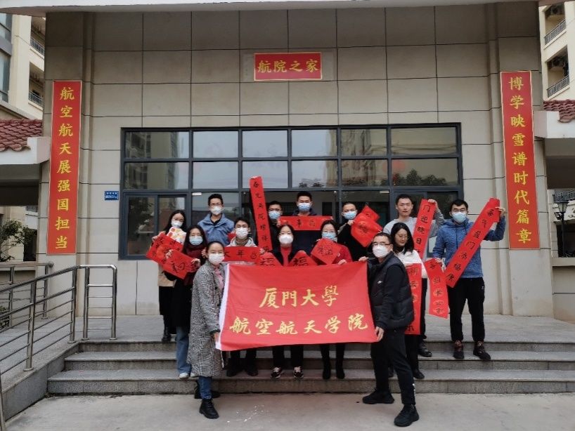 辞旧迎新,瑞兔送福。1月16日,在癸卯兔年即将到来之际,航空航天学院在翔安校区映雪园区、博学园区的学生公寓和“一站式”空间举办“除尘布新”迎新春暨留校学生慰问活动。航空航天学院党委副书记林蔚,团委书记沈鑫,一站式兼职辅导员欧阳智贤,辅导员董芬、林圳钦等老师到场,与留校学生们一起写春联、贴福字、剪窗花,并且为他们带来新春的祝福和节日的慰问。