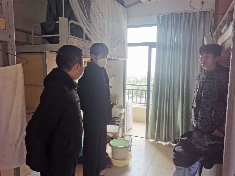 1月17日,学院党委副书记王寒、团委书记沈鑫、辅导员董芬走访全程留校本科生宿舍,看望慰问留校学生,为同学们提前送上新春祝福并叮嘱同学们在留校期间要健康作息,出行做好个人防护。