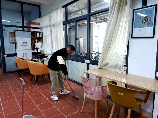 扫去一年尘晦,张贴新年新气象。“尘”与“陈”谐音,新春扫尘即“除陈迎新”。当天下午,留校同学在映雪、博学的宿舍、“一站式”空间积极开展除尘布新等工作。整理自行车、扫地擦玻璃、整理桌椅和书架,同学们将去年的春联换下,贴上对新一年的美好祝愿。