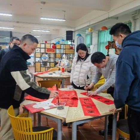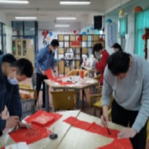 挥毫泼墨迎新春,总把新桃换旧符。贴春联、剪窗花是过年不可缺少的传统习俗,红纸黑字、精巧构思,寄托了老百姓们迎新纳福的美好愿景。在这一年一度的“书法大赛”中,师生们挥毫泼墨,将对新春的祝福寄予笔下。在大家的运笔走势间一幅幅充满喜庆气息、蕴含浓浓年味的对联跃然纸上。而在另一边,随着剪刀的一张一合、辗转移动,一幅幅漂亮生动的剪纸在同学们的手中诞生。新年春联和窗花一贴,年味马上就来了。