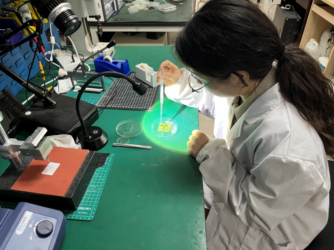 张金惠进行刚柔并济柔性触觉传感器制备实验