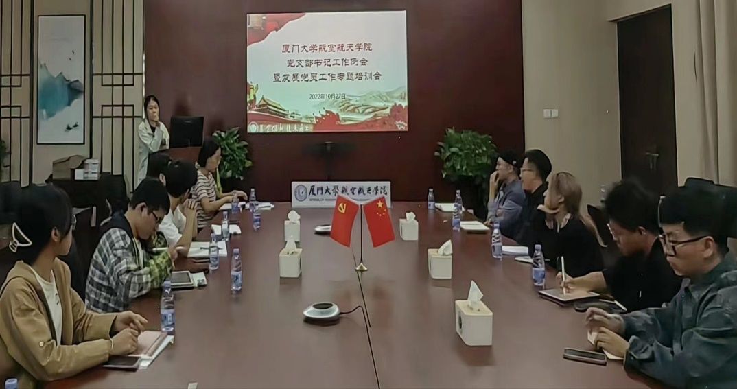 2022年10月27日下午,航空航天学院在501会议室召开2022年第9次党支部书记工作例会暨发展党员工作专题培训会。学院党委书记王康平,党委副书记林蔚、王寒及全体师生党支部书记通过线上线下的形式参加。
