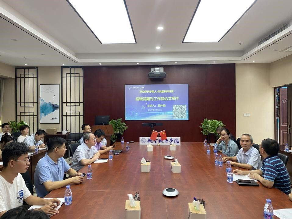 为做实“一人一策”人才发展规划,打造航空航天学院“人才发展系列讲座”精品讲座,2022年10月7日上午,学院邀请厦门大学学报编辑部副主任(主持工作)邱仲潘副教授,编辑任滢滢老师、汪军老师为学院“人才发展系列讲座”第三场做专题报告。学院副院长周伟教授,自动化系主任洪文兴教授、仪器与电气系副主任郑高峰副教授及学院教师代表等参加讲座,讲座由周伟主持。