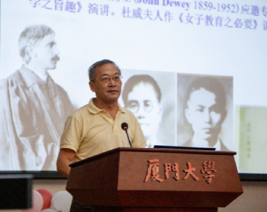 典礼结束后,人文学院连心豪教授为新生做“厦大‘四种精神’”校史校情讲座,讲座由院党委副书记林蔚主持。