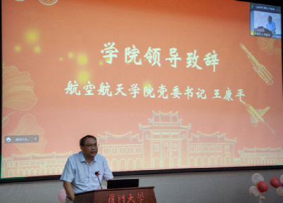 王康平在致辞中回顾了航空航天学院悠久的学科历史,他表示学院自2015年成立以来,始终瞄准国际学科前沿和国家战略目标,坚持顶天立地办学和合作共建战略,取得了一系列喜人的科研成果。他指出,大学是人生的“第一枚扣子”,一定不能扣错。大学之大,在于大德、大爱、大学问。他勉励同学们要有担当国家富强和民族复兴责任的德行,要传承发扬厦大“爱国、革命、自强、科学”的四种精神,“致吾知于无央,充吾爱于无疆”,要明确学习目标,脚踏实地、奋勇向前,坚定地把个人的理想追求融入到党和国家事业之中。