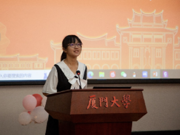 2022级本科生汪睿心代表新生发言。厦门大学如傍晚的海一般温柔,而正是这一份美好的憧憬,带着她步入厦门大学,成为航空航天学院的一员。她表示今后自己将努力学习传承厦大的“四种精神”,追随前辈的脚步,刻苦学习、认真钻研、勇于开拓、不断创新,为探索苍穹、飞天逐梦贡献属于自己的一份力量。