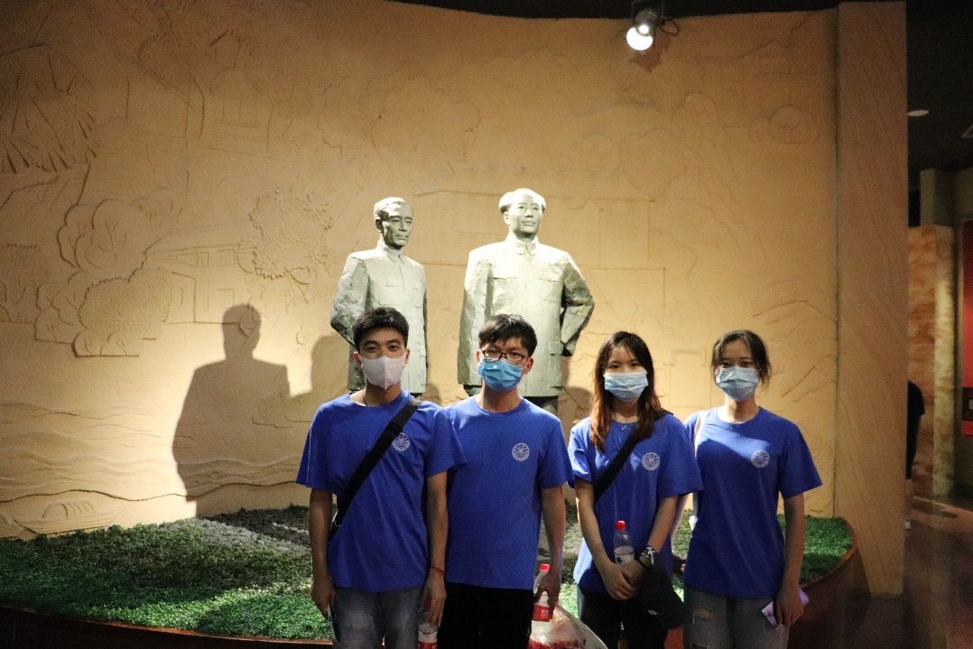实践队成员在毛泽东同志和周恩来同志塑像前的合影