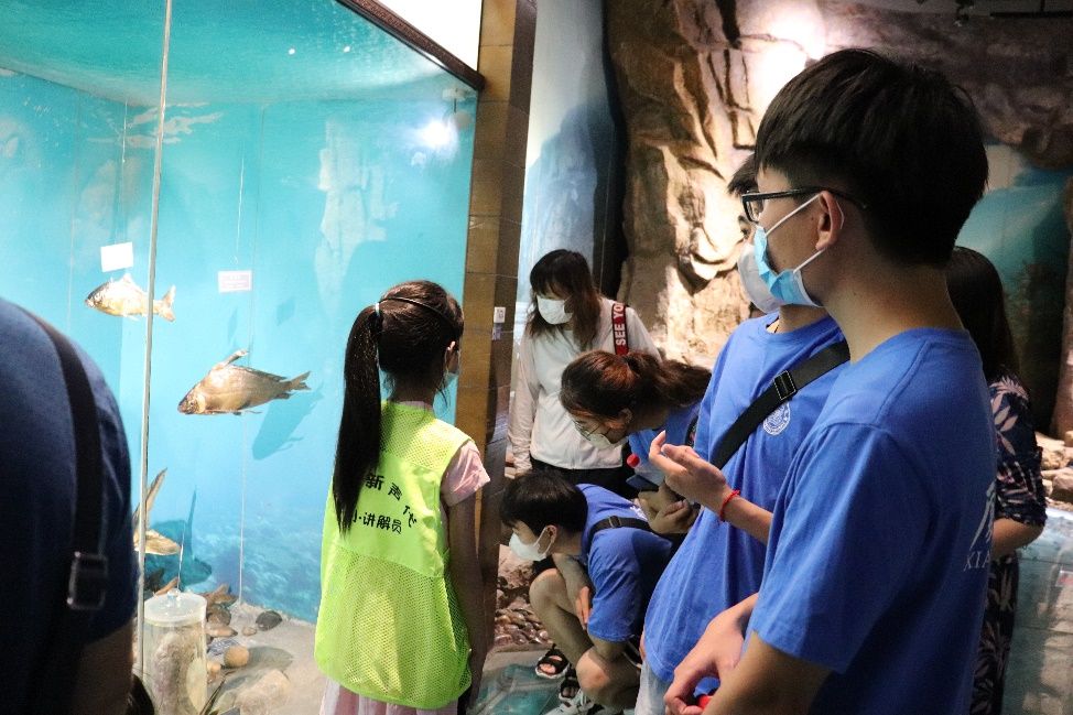 7月20日下午,实践队走进重庆中国三峡博物馆,从《壮丽三峡》、《远古巴渝》、《重庆·城市之路》、《抗战岁月》四个基本主题了解重庆三峡文化。馆内,实践队员见到了“新生代小小讲解员”,他们声情并茂地讲解三峡文化,在他们身上看到了历史的传递和文化的力量。