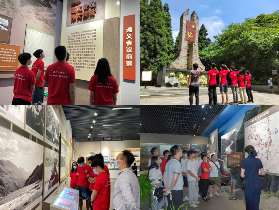 初心如磐践使命,砥砺奋进启新程。7月14日至16日,“追光逐梦”实践队走进革命老区遵义市,探访遵义会议会址、红军烈士陵园、娄山关、四渡赤水纪念馆等地,感受遵义这座红色古城的历史底蕴,学习弘扬伟大的遵义会议精神、长征精神。在遵义会议会址,实践队走进遵义会议纪念馆,以长征为主线,分别学习了“战略转移,开始长征” “遵义会议,伟大转折” “转战贵州,出奇制胜”“勇往直前,走向胜利”“遵义会议,光辉永存”五个部分的红军长征转战贵州的史迹。队员们深刻认识到遵义会议是中国共产党和红军历史上一个生死攸关的转折点,挽救了红军,挽救了党,挽救了中国革命。红军四渡赤水纪念馆内,队员们在讲解员的带领下,细细品味毛主席运筹帷幄、用兵如神的指挥艺术。在红军烈士陵园内,队员们向那些曾经为革命事业抛头颅、洒热血的先烈们鞠躬致意,更加深刻体会到新时代新青年肩负的责任使命。