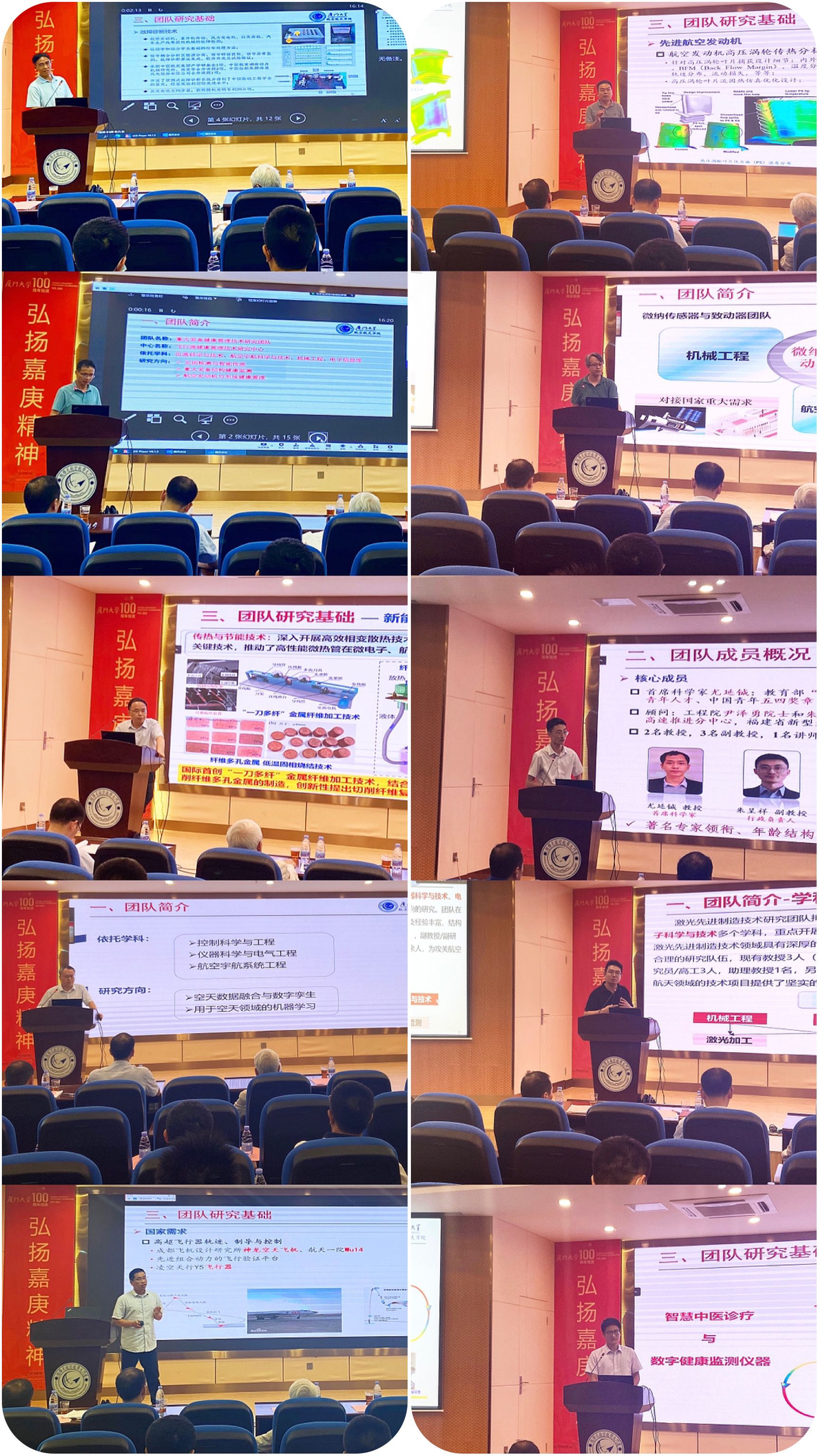 会上,航空航天装备动力学研究中心罗华耿教授、飞行器健康管理技术研究中心王奕首教授、智能制造技术与装备研究中心周伟教授、厦门大学空天数据智能交叉创新中心洪文兴教授、无人系统研究中心吴了泥教授、先进空天动力气动传热与燃烧技术中心黄玥教授、微纳制造工程研究中心王凌云教授、飞发一体化研究中心朱呈祥副教授、激光应用中心周锐高级工程师、极端环境测试技术与仪器研究中心海振银助理教授十个团队代表依次汇报发言。各团队分别从团队简介、团队成员概况、团队研究基础、近三年主持项目与到位经费情况和团队建设目标和预期成果等五个方面展开介绍。