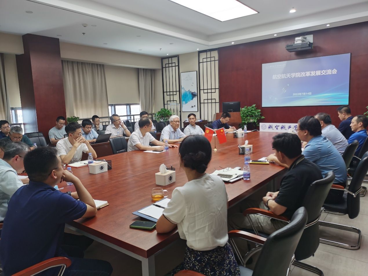 2022年7月14日上午,航空航天学院在院楼501会议室召开改革发展交流会,对学院改革发展进行意见征求与座谈交流。学院院系领导、教师党支部书记、国家级人才、各系教授和青年教师代表等参加座谈。会议由航空航天学院党委书记王康平主持。